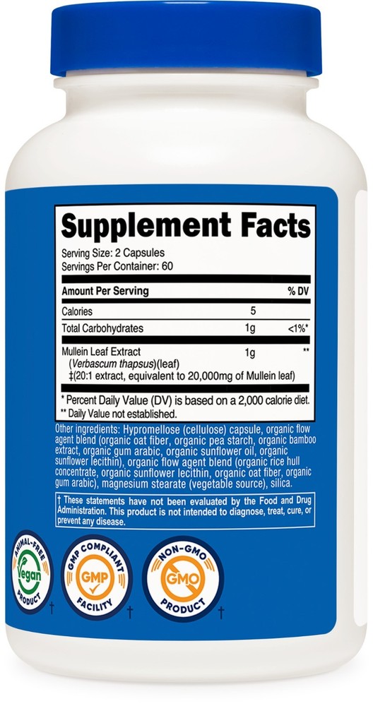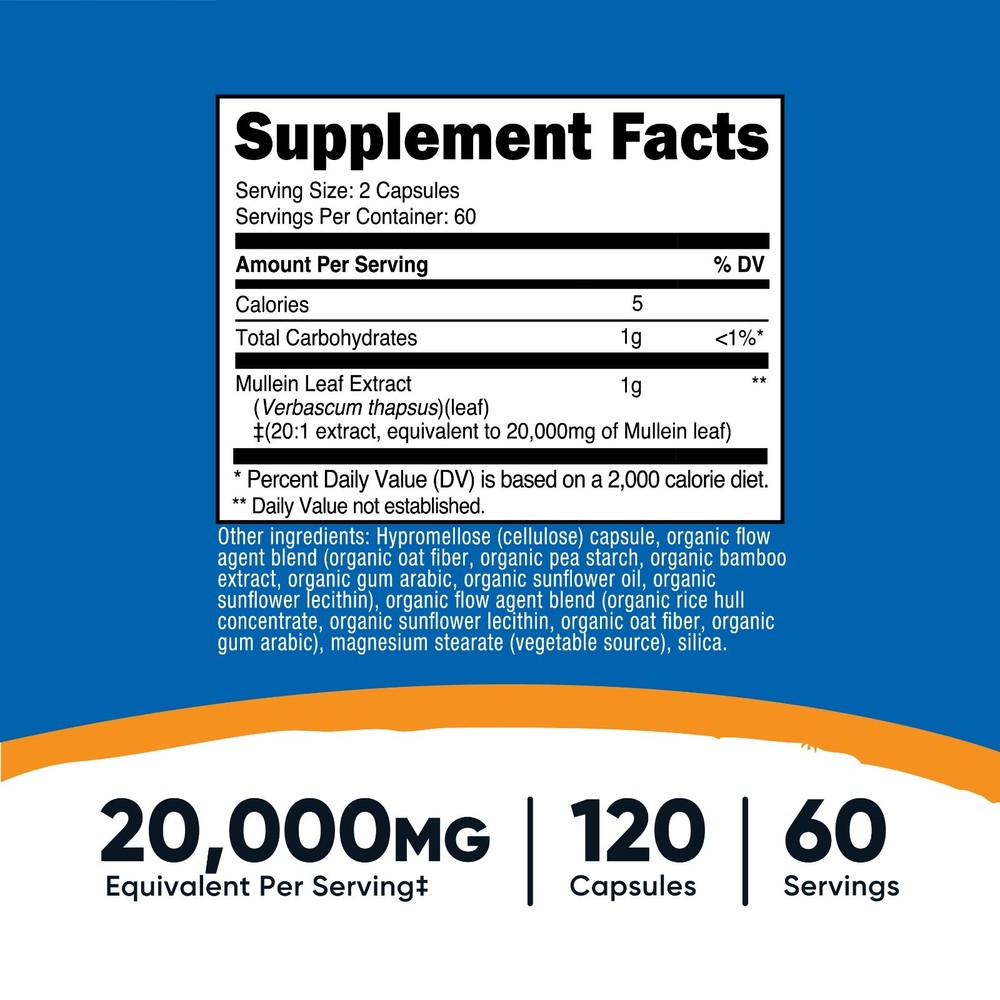 Welcome to the official eSupplements eBay store! Nutricost Mullein Leaf Extract (20,000mg Equivalent) 120 Capsules - Vegan, 60 Servings Nutricost Mullein Leaf Extract Capsules Contains 120 vegan capsules for a full 60-day supply (2 capsule per serving) Made with mullein leaf in a convenient capsule form Provides 1 mg of mullein leaf extract at a 20:1 concentration—equivalent to 20,000 mg of mullein leaf per serving A vegan, gluten-free, and GMO-free herbal option Manufactured in an NSF Certified, GMP Compliant facility Nutricost Mullein Leaf Extract offers traditional herbal support in a convenient capsule form. Each serving provides 1 mg of mullein leaf extract at a 20:1 concentration—equivalent to 20,000 mg of mullein leaf. With 120 vegan capsules per bottle and 60 servings, this supplement fits seamlessly into your daily routine. Commonly associated with wellness practices focused on breathing, airways, and overall respiratory support, it's a straightforward addition to your supplement stack. Q. What are your shipping rates for the US? A. We offer Free Domestic shipping. Q. Do you offer international shipping? A. Shipping & Handling International: We have fast international shipping available to most countries. Rates may vary by location and order size. International customers (anyone outside the U.S. - including Canada & US protectorates) should be aware of and are responsible for all additional fees associated with duties, taxes, customs, and other costs incurred from shipping internationally. Your purchase includes courier fees only ***Please be aware it is against U.S. Law to underestimate the value of your package on the customs form. ***Please be aware we will not refund any international package that is refused. These additional costs vary depending on your location. Please refer to your local customs office to estimate these fees. ***Attention Alaska & Hawaii Customers Shipping may take up to 4-5 Business days