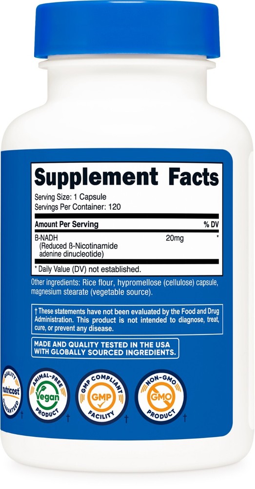 Welcome to the official eSupplements eBay store! Nutricost NADH Supplement (20mg) 120 Capsules Nutricost's NADH Capsules Each bottle contains 120 capsules 20mg of NADH per serving Vegan, Gluten-Free and GMO-Free As a dietary supplement, take 1 capsule daily with 8-12 oz of water or as directed by your healthcare professional Manufactured in an NSF Certified, GMP Compliant, FDA Registered Facility Q. Is there a return policy? A. We offer a 30 day money back guarantee from the time of delivery of purchase. All unopened products in resalable condition will receive a full refund of the product sale price. Customer is responsible for shipping costs. One opened or empty product will receive a full refund less a 15% processing fee . Please contact our customer service department using your eBay message system for instructions on how to return your product. Q. What are your shipping rates for the US? A. Shipping & Handling Domestic: Fast 2-5 business days shipping is 100% FREE Q. Do you offer international shipping? A. Yes! We offer fast international shipping to most countries. Rates may vary by location and order quantity. International customers (anyone outside the U.S. - including Canada & US protectorates) should be aware of and are responsible for all additional fees associated with duties, taxes, customs, and other costs incurred from shipping internationally. Your purchase includes courier fees only ***Please be aware it is against U.S. Law to underestimate the value of your package on the customs form. ***Please be aware we will not refund any international package that is refused. These additional costs vary depending on your location. Please refer to your local customs office to estimate these fees. ***Attention Alaska & Hawaii Customers Shipping may take up to 4-5 Business days