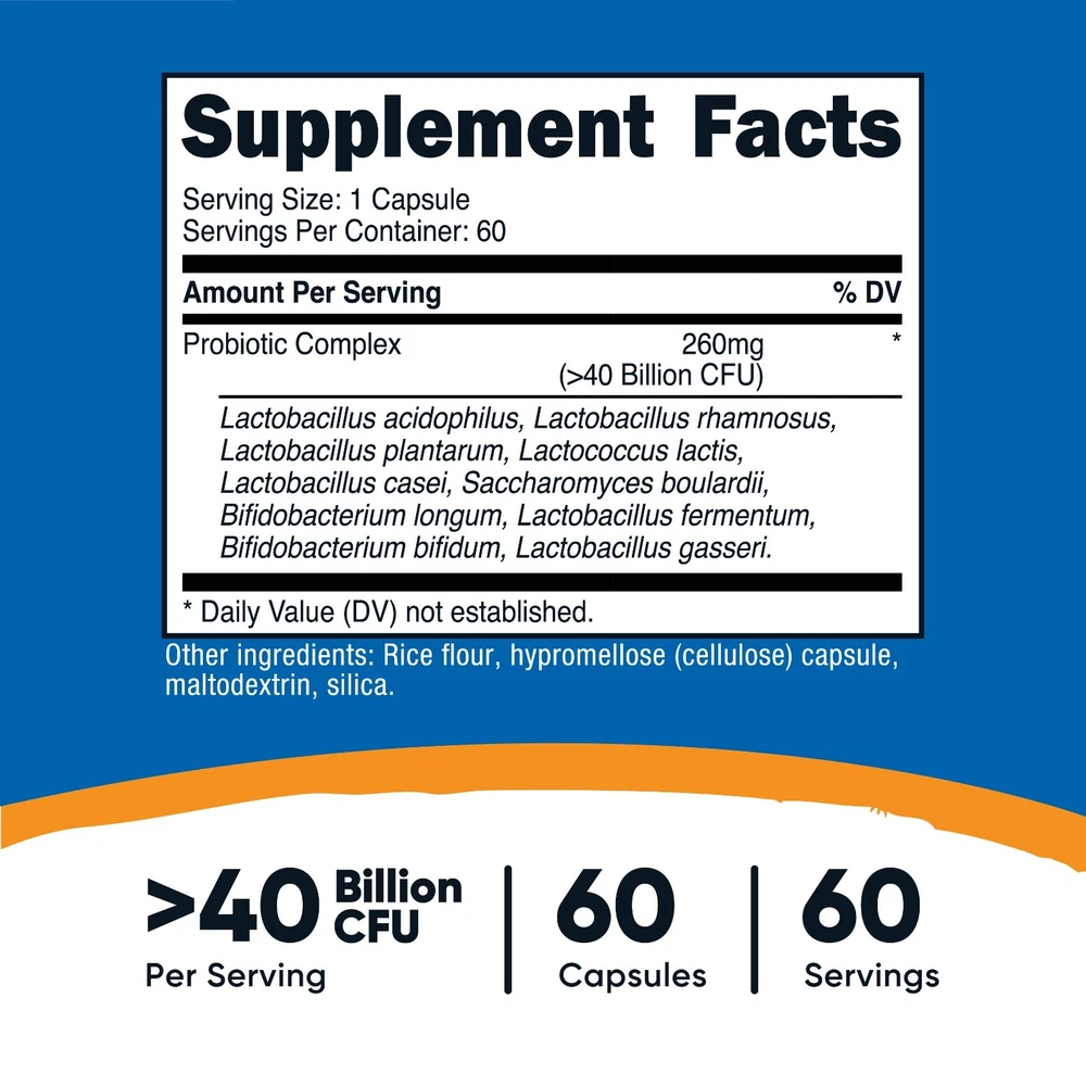 Welcome to the official eSupplements eBay store! Nutricost Probiotic Complex (40 Billion CFU) (60 Capsules) - GMO-Free, Gluten-Free Probiotic Complex - 40 Billion CFU 60 Convenient Capsules: Each bottle contains 60 capsules, providing a 60-day supply. Over 40 Billion CFU Per Serving – Formulated with more than 40 billion CFU per serving for your daily needs. Third-Party Tested & GMP Compliant – Produced in a GMP-compliant facility and rigorously tested by a third party for quality and purity. GMO-Free & Gluten-Free – Crafted without genetically modified ingredients, and manufactured to be free of gluten Carefully Formulated – Designed to meet quality standards, this product is a dependable addition to your daily routine. Nutricost Probiotic Complex offers a probiotic blend designed to fit seamlessly into your wellness routine. Each bottle contains 60 capsules, with over 40 billion CFU per serving to provide a dependable source for your daily needs. Produced in a GMP-compliant facility and third-party tested, this product meets stringent quality and purity standards. Crafted to be both GMO-free and gluten-free, it reflects a commitment to clean and trusted ingredients. Elevate your daily regimen with Nutricost Probiotic Complex. High Quality Probiotic Complex! Q. What Role Do Bacteria Play in the Body? A. Bacteria play a critical and positive role in our bodies defense and in digestion. Harmless bacteria in our gut consume resources that we cannot, and leave the byproducts which we can use. In addition, these same bacteria keep populations of harmful bacteria in check by decreasing the available resources for harmful bacteria to use. Without these helpful bacteria, dangerous and antibiotic-resistant bacteria would grow in amounts that would pose a serious problem to our health. Q. What Benefits Can Probiotic Supplementation Provide? A. Nutricost's Probiotic Complex provides full digestive support as well as infection protection. When you take antibiotics or go through extreme stress the helpful bacteria in your system take a toll. Nutricost's Probiotic Complex replaces these helpful bacteria and gives you back the protection and digestive support they provide Q. Do I Really Need to Supplement with Probiotics? A. Most people will use antibiotics at some time in their lives, and everyone goes through periods of stress, both mentally and physically. When this happens, we are put at risk for infection and decreased digestive capability as the helpful bacteria in our gut die off. Only by taking probiotics can we be sure we are keeping up healthy bacteria populations and staying safe from disease. Q. Why Should I Choose Nutricost's Probiotic Complex? A. Nutricost offers a competitive dose at an even more competitive price. In addition to offering 50 Billion CFU, Nutricost offers you the most important strains for the best Probiotic protection available. Q. Is there a return policy? A. We offer a 30 day money back guarantee from the time of delivery of your purchase. Any unopened products in resalable condition will receive a full refund of the product sale price. Customer is responsible for shipping costs. Up to one opened product can be returned for a full refund within that time period. No other opened or damaged product will be accepted. Please contact our customer service department using your eBay message system for instructions on how to return your product. Q. What are your shipping rates for the US? A. We offer Free Domestic shipping. Q. Do you offer international shipping? A. Shipping & Handling International: We have fast international shipping available to most countries. Rates may vary by location and order size. International customers (anyone outside the U.S. - including Canada & US protectorates) should be aware of and are responsible for all additional fees associated with duties, taxes, customs, and other costs incurred from shipping internationally. Your purchase includes courier fees only ***Please be aware it is against U.S. Law to underestimate the value of your package on the customs form. ***Please be aware we will not refund any international package that is refused. These additional costs vary depending on your location. Please refer to your local customs office to estimate these fees. ***Attention Alaska & Hawaii Customers Shipping may take up to 4-5 Business days