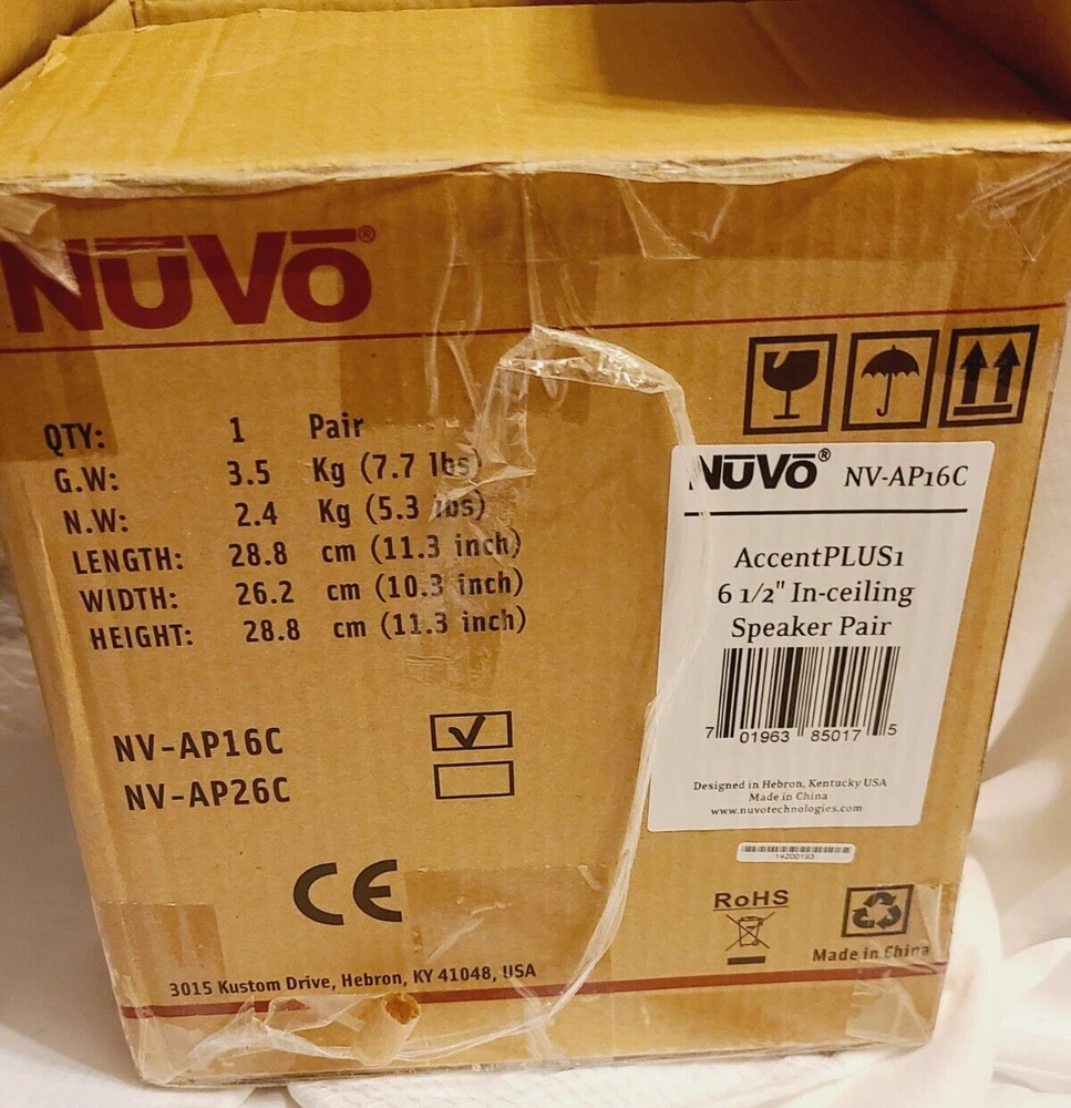 Product Overview: Enhance your home audio experience with this pair of Nuvo AccentPLUS1 NV-AP16C 6.5” In-Ceiling Speakers. Designed for exceptional sound quality and easy installation, these speakers feature durable construction and a sleek, low-profile design. Ideal for home theaters, multi-room setups, or custom installations, they deliver immersive audio with a seamless aesthetic. Key Features: Speaker Size: 6.5 inches Features: 30° pivoting silk-dome tweeters, durable butyl rubber surrounds, and anti-debris baskets for clean operation. Materials: Paint-friendly, low-profile aluminum grills with integrated mounting. Frequency Response: Engineered for rich sound reproduction with a 12 dB crossover. Model Number: NV-AP16C Dimensions (each speaker): Approx. 11.3” x 10.3” x 11.3” (L x W x H) Weight (pair): 5.3 lbs net weight Note: No user manual, but downloadable from Nuvo's official website. Why It’s Desirable: Superior sound performance for home audio enthusiasts. Flexible pivoting tweeters allow for precise sound direction. Easy flush-mount installation with integrated brackets. Trusted Nuvo quality ensures reliability and longevity. Package Includes: Two (2) Nuvo AccentPLUS1 NV-AP16C In-Ceiling Speakers Two (2) Aluminum grills (sealed in bags with faint yellow spots) Original box Disclaimer: ⭐ Shop & Save: Check out my store for more great finds across all categories! Stock up on multiple items to save on shipping. ⭐ Items are shipped same or next business day once payment is received. ⭐ Please be sure to review photos and description for product information. ⭐ All items are in excellent condition unless otherwise described. Flaws will be photographed.