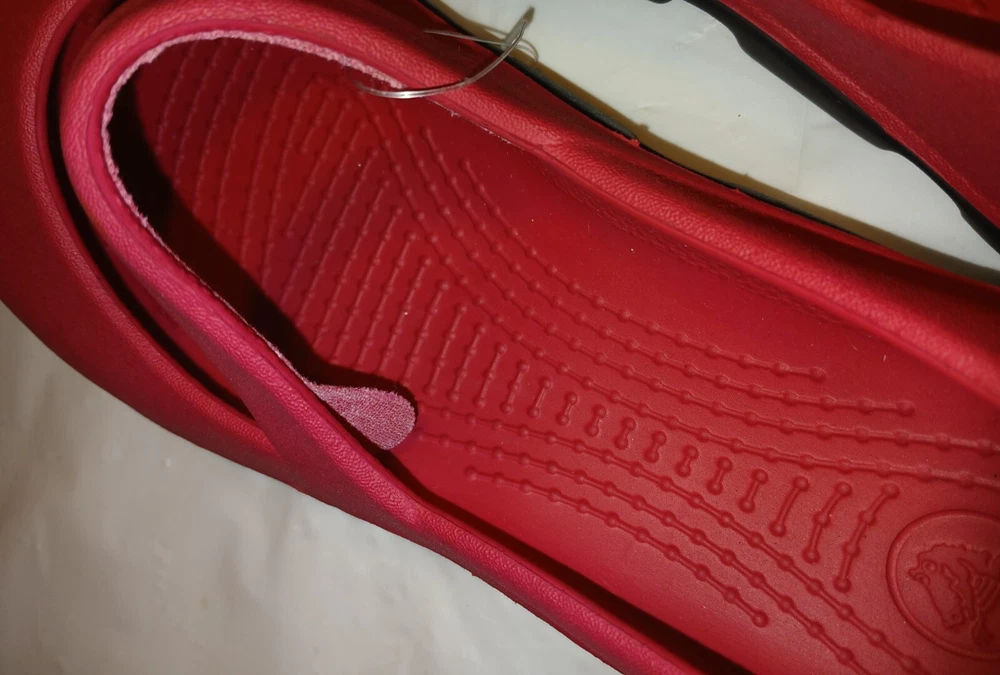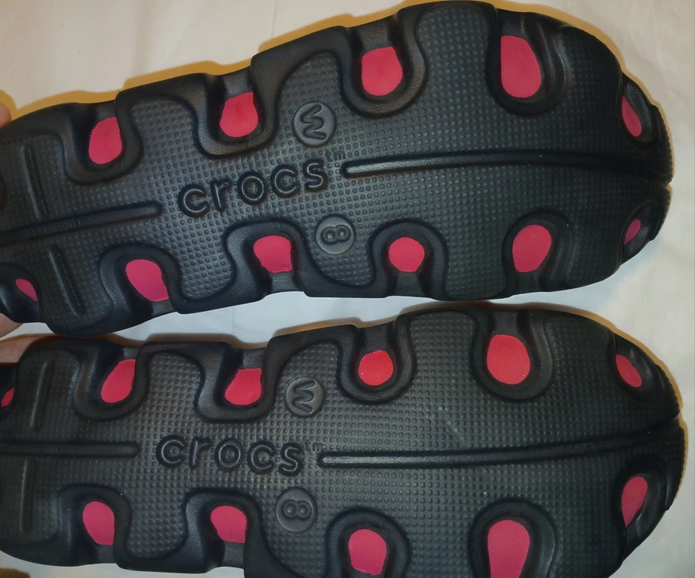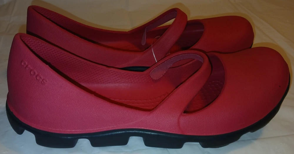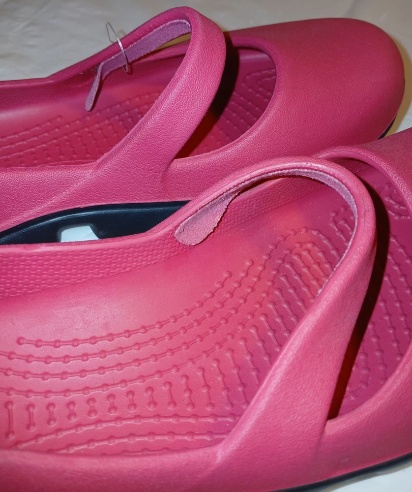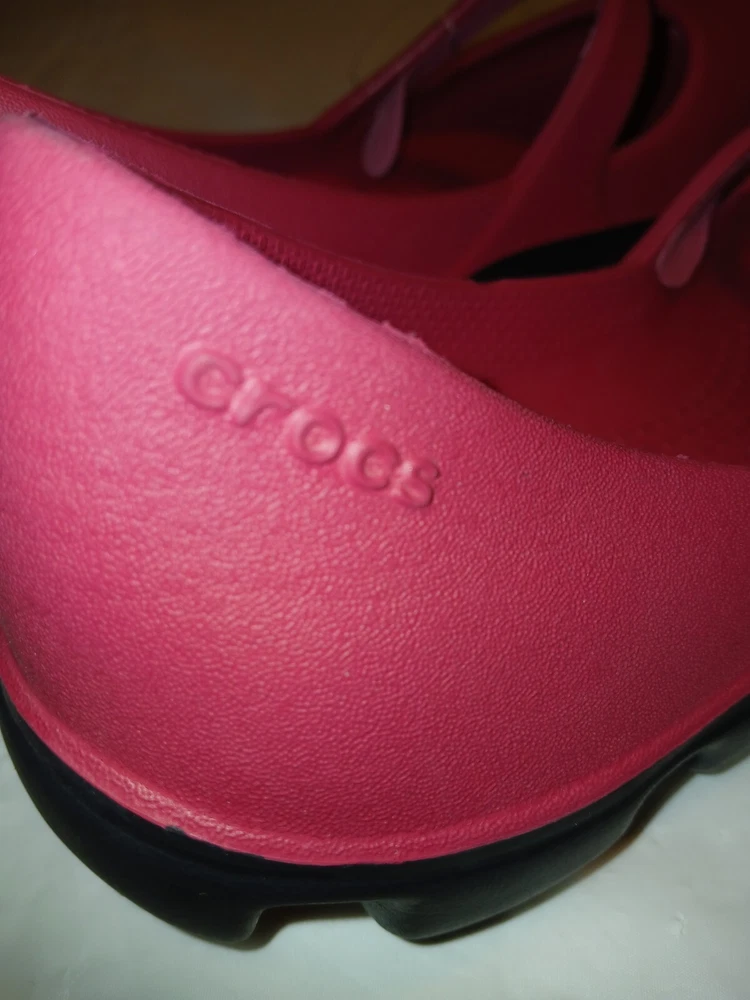 These women's size 8 Crocs are new without tags, never worn. Please see the pictures. The fabric on the inside of the straps seems to have started to detach, maybe just a dab or shoe glue or maybe it's supposed to peel off I have no idea, it's not excessive, just a detail to notice. Please message me with any questions before you place your order. We do not offer returns on clothing and shoes. Ships to you by the next business day