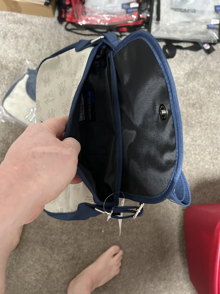This stylish and functional saddle bag is perfect for any New York Yankees fan. It features the team's iconic logo and colors, making it a great accessory for game day or any day. With a one-size-fits-all design, it's easy to carry and can hold all your essentials. Made by Earth Links, this high-quality bag is sure to impress. It's perfect for fans of the Major League (MLB) and baseball in general. Whether you're using it to carry your phone, tickets, and keys, or just as a stylish accessory, this saddle bag is a must-have for any Yankees fan.