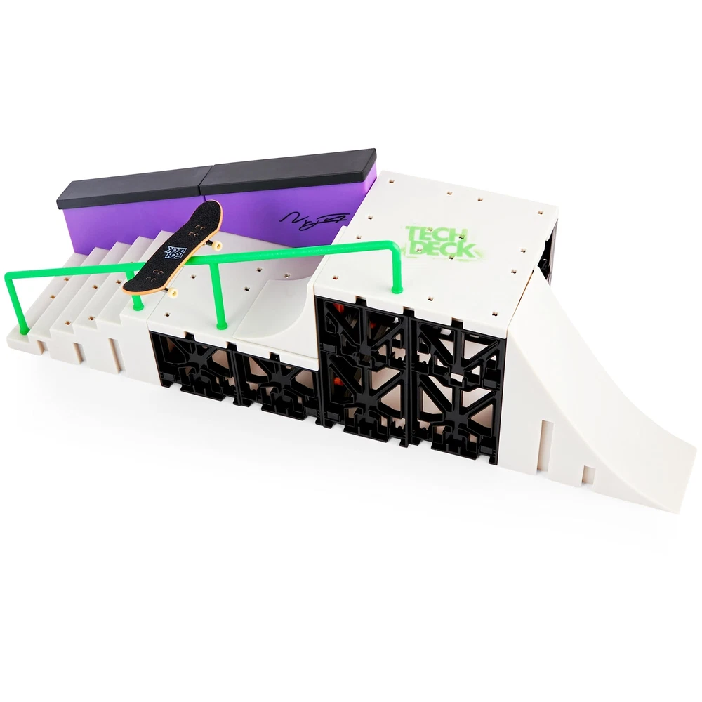 Grab some air with and recreate skateboard professional Nyjah Huston’s own private training facility! The Nyjah Skatepark X-Connect Park Creator ramp set includes everything you need to build and customize an incredible park for you to perfect your finger skateboard skills. Set up different combinations with a Hubba ledge, stair set, rail, and ramps to learn and progress your tricks. Grind the rail, slide the Hubba ledge, jump the stairs or set up and customize the spot in any way you like. Skate the park with the included exclusive Nyjah Huston finger board and add to your mini skateboard collection. Combine the park with other X-Connect ramps, such as the Jump N’ Grind or Bowl Builder ramp sets (each sold separately) to build the ultimate facility for you to shred. Use the Nyjah Skatepark X-Connect Park Creator with your skateboards collection or BMX (each sold separately). fingerboards and ramp sets are little toys for boys, girls and skate-lovers ages 6 and up. If you want real skate graphics from real skate companies, then it has got to be — start with small toys, go big and collect them all! CUSTOMIZABLE PARK: Recreate or customize your mini skateboard park with the Nyjah Skatepark X-Connect Park Creator skateboard ramp set. Set up different combinations with a stair set, rail, Hubba ledge, and ramps EXCLUSIVE FINGERBOARD: Add to your finger skateboard collection and skate your creation with the exclusive Nyjah Huston fingerboard included in the set. Real skateboard graphics from real skate brands X-CONNECT PARK CREATOR: Grind the rail, slide the Hubba ledge, jump the stairs or customize the Nyjah Skatepark in any way you like, for use with fingerboard or BMX collections (each sold separately) BECOME A : Combine other X-Connect playsets for the ultimate skatepark. Shred your exclusive finger board (each sold separately) with grip tape, bushings and more just like the pros do 2024 DEALS: Great toys for boys or toys for girls and gifts for that love collectibles, toy figures & playsets, or mini skateboards. Great Christmas gift, or birthday gifts ages 6 and up Includes: 1 Fingerboard, 1 Large Roll-In Ramp, 1 Roll-In Ramp, 1 Long Rail Bottom, 1 Long Rail Top, 1 Square Panel, 1 Square Panel, 1 Staircase, 2 Hubba Tops, 1 Stair Hubba Bottom, 1 Flat Covered by the Spin Master Care Commitment. See below for full details