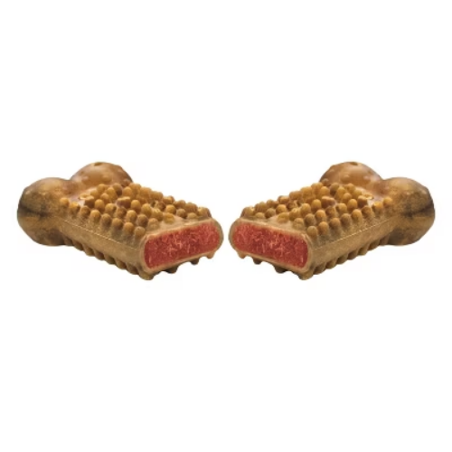 Important Note for Our Valued Customers: To offer you the best prices with free shipping, we occasionally experience shipping delays. If this happens, we’ll notify you immediately, issue a full refund, and invite you to place a new order at your convenience. To keep costs low, we sometimes reuse branded packaging boxes for shipments—we appreciate your understanding if you receive your order in repurposed packaging. Rest assured, all products we sell are 100% brand new, unopened, and freshly manufactured, including pet food and human-grade items, with a minimum 8-month shelf life remaining. If any issues arise, please contact us first—we’re committed to resolving them quickly. If you’re not completely satisfied, we offer a full refund with no hassle. Thank you for your trust and support! Description Reward your dog with Natural Nubz Edible Dog Chews! These wholesome treats are made with real meat and feature a savory center that dogs crave. For more frequent rewards, they feature an optional center break point to split the treat in half. These dog chew treats also feature raised nubs that help reduce plaque and tartar as dogs chew, leading to fresher breath and cleaner teeth! Natural Nubz edible dog chews are highly digestible and long-lasting—sure to keep your pup satisfied and occupied. These natural dog treats are a tasty, wholesome way to train and reward your furry friend! highlights Delicious natural dog treats Features break point for smaller rewards and multiple treating occasions Highly Digestible - Chew treats contain no added salt, no artificial preservatives, and no artificial colors Nubs help clean teeth and gums Features a meaty center and natural beef flavor Chew treat dimensions: Out of package measures 3.5" long x 1" wide x 0.75" high Amount : % Daily Value* Crude Protein (Min) 4% Crude Fat (Min) 0.5% Crude Fiber (Max) 5% Moisture (Max) 15% * Percentage of Daily Values are based on a 2,000 calorie diet. Ingredients: wheat starch, vegetable glycerin, natural flavor, beet powder (color), dried chicken, powdered cellulose, lecithin, natural beef flavor