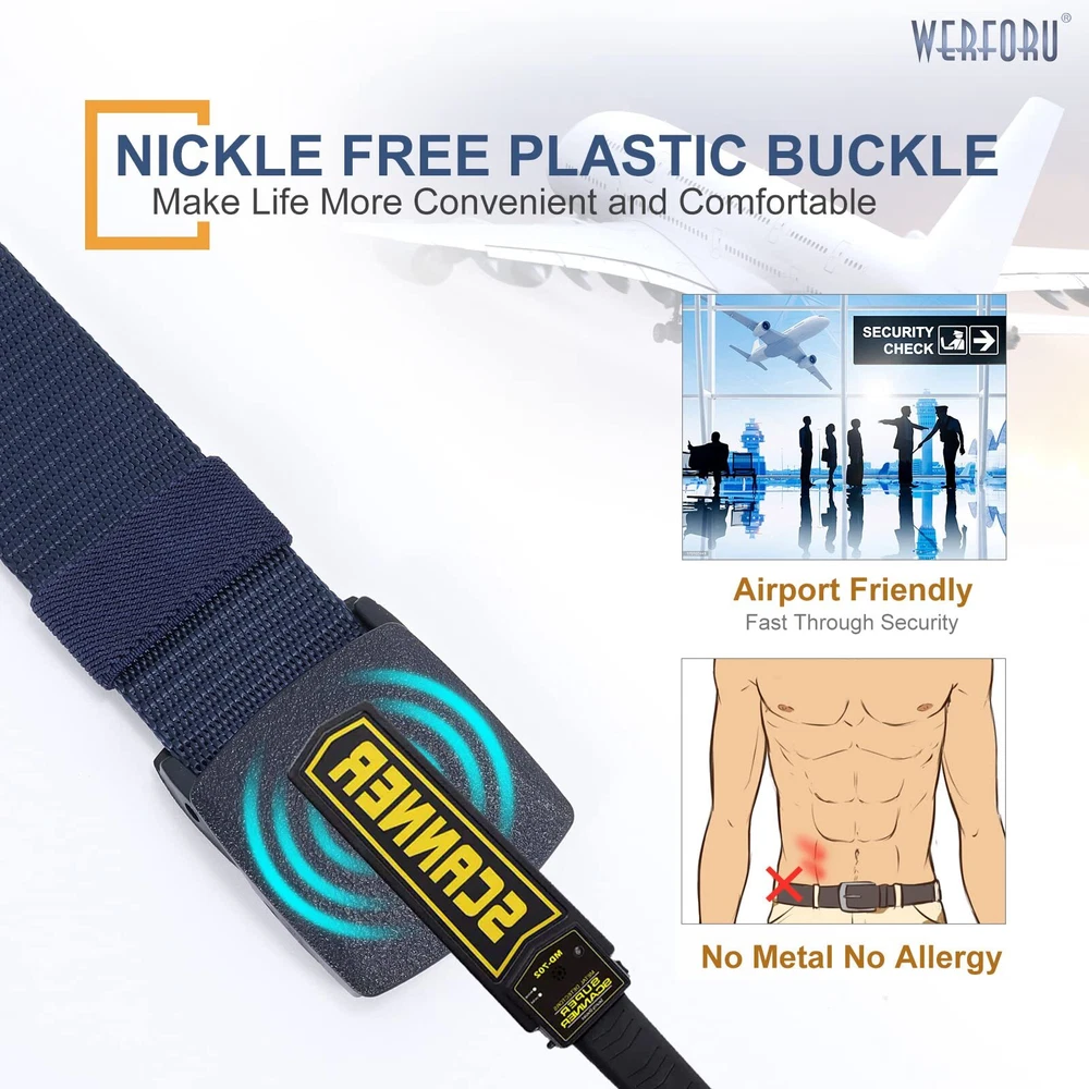 Nylon Belt for Men Military Tactical Belt Canvas Outdoor Web Belt with Plastic Buckle Premium Quality Nylon Material Men's nylon tactical belt is made of high-quality nylon material, it is lightweight and wear-resistant, with fast sweat evaporation, quick-drying, breathable. Strong Durable Plastic Buckle Nickel Free, Non-Allergic. Allow you to be able to go through a metal detector or airport security without having to take it off. The plastic buckle design is also a good choice for someone metal allergy to wear. No Hole Adjustable Belt No holes nylon webbing with flip top buckle design, hold tightly,supper easy to use, no longer worry about adjusting the strap holes. Just slide the strap into the buckle, adjust to fit your waist size then press to close. Trim to Perfect Size The buckle is removable, If the Strap is too long for you,you can cut the excess strap to the perfect size. Color: black,khaki,blue,gray ,coffee Four Kinds of Combination Black+khaki Black+khaki+Blue Black+khaki+Gray Black+khaki+Blue+Coffee Various Match Simple fashion style designed for men, you can wear it in your daily life, matching your jeans/pants/shorts/ski pants/golf dress/cargo pants. And it can also match many style military uniform. Full Occasions Support Awesome accessory for your outdoor sports and daily wearing. Such as hiking, camping, skiing, gardening ,riding ,hunting or fishing and and other casual occasions etc. QUALITY NYLON BELT-- Premium nylon webbing, lightweight, soft, breathable,flexible, sturdy and durable, sweat absorption and dry fast. Compare with the leather belt, the nylon belt won’t be cracked and aged after long times using. PLASTIC BUCKLE DESIGN---Designed with metal-free plastic buckle, which is not easy to crack and breakage. Nickel free plastic buckle, feel comfortable and easy to wear. Non-metallic buckle belt allow you a easy/quick clearance at the security checkpoint at the airport. And especially suitable for metal allergy to wear. VARIOUS COLLOCATION---We have 2 pack,3 pack,4 pack nylon belt for your choice.Different colors nylon belt meet your different daily wear needs. Lightweight, quick dry, comfort nylon material strap with plastic buckle suitable for daily wearing with all pants, and outdoor heavy duty work or sports (hiking pants, ski pants, snow pants etc). A great gift for your friend and relatives! OCCASION---Available in black,khaki,blue,gray ,coffee 5 colors for choose,enough quantity and color to match all your daily outfit. This nylon belt is not only for daily wear, but also more suitable to outdoor sports, such as: climbing mountains, hiking, golf, hunting, fishing ,skiing and so on. FULLY ADJUSTABLE---6 size for your choice,meet most people needs. Belt strap width is 1.5 inches,easy to pass through most pants. No holes belt design, so its tightness and length can be adjusted freely to meet different wearing requirements. If the strap is too long for you, you can trim the strap length to fit your size. The ratchet buckle design makes the belt non-slip, stay tight full day.