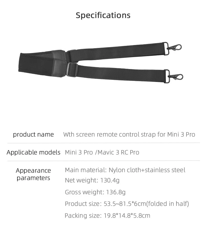 Product Description Nylon Cloth Adjustable Hanging Neck Wider Lanyard Strap For DJI RC Pro/RC Drone Features: 1. Free your hands, and let the aerial photography flight add more peace of mind; 2. Soft fabric, wider strap, comfortable hanging neck, suitable length of hanging neck; 3. Stainless steel screws, with anti-loose silicone pads, firm and durable to prevent falling off; 4. Disassembly-free storage, can be stored in the bag without removing screws; 5. Comfortable to wear, the length can be adjusted in the range of 53.5-81.5cm, and the adjustable buckle meets the wearing habits of different groups of people Specifications: Material: Nylon cloth + Stainless steel Size: 53.5-81.5cm Suitable for DJI RC Pro, for DJI RC Package includes: 1 x Lanyard 2 x Aluminum Alloy Screws If you have any questions, please feel free to contact us via ebay. We usually respond within 24 hours. Payment Shipping Returns Contact Us We accept all verified payments from ebay. Orders will be shipped after receiving cleared payment. Payment due within 7 days after auction ends and for buy it now listings. We ship most of our orders within 24 hours, and may up to 48 hours for. If you want faster shipping way. Please contact us before making payment. Sometimes due to problems with our transportation company system, your shipping information may be delayed to update. We recommend that you try again after 3-4 days. If you still haven't checked the shipping information, you can contact us by ebay message. Always believe we can figure things out with communication, if it comes to return, the pacakge must be intact and the same as you receive. If you have any questions, please feel free to email our service specialists 24 Hours a Day, 7 Days a Week. We will reply you ASAP. Return/refund is accepted within 30 days after the buyer receives the item. NO exchange will be accepted after 30 days from the date when the item is received. Please contact us first before returning your product!!! If you have any questions, our Customer Service staffs welcome you to email us. We strive to answer all questions and resolve any problems as quickly as possible. You can contact us 7*24, we will reply at the first time, and we will surely solve your problems. Note: 1.We try our best to reply to your emails as soon as possible, however, due to high volume of daily incoming emails and time zone difference, we may not be able to reply your emails immediately. Please allow 1 business days for us to response. If you do not receive any reply from us, please check your email ensuring your mailbox has not reached full size. 2.Due to some ISP SPAM filter settings, you may not be able to receive our replies; if you have problems receiving our emails, you may need to use a different email account to contact us. 3.Please give us the opportunity to resolve any problem. We understand the concerns and frustrations you might have, and will try our best to resolve the issues. Please email us before leaving any negative feedback or open any dispute on PayPal. 4.We care about our valued customers, and will always try to help you. So if you have any problems, please e-mail us immediately. Payment We accept all verified payments from ebay. Orders will be shipped after receiving cleared payment. Payment due within 7 days after auction ends and for buy it now listings. Shipping We ship most of our orders within 24 hours, and may up to 48 hours for. If you want faster shipping way. Please contact us before making payment. Sometimes due to problems with our transportation company system, your shipping information may be delayed to update. We recommend that you try again after 3-4 days. If you still haven't checked the shipping information, you can contact us by ebay message. Returns Always believe we can figure things out with communication, if it comes to return, the pacakge must be intact and the same as you receive. If you have any questions, please feel free to email our service specialists 24 Hours a Day, 7 Days a Week. We will reply you ASAP. Return/refund is accepted within 30 days after the buyer receives the item. NO exchange will be accepted after 30 days from the date when the item is received. Please contact us first before returning your product!!! Contact Us If you have any questions, our Customer Service staffs welcome you to email us. We strive to answer all questions and resolve any problems as quickly as possible. You can contact us 7*24, we will reply at the first time, and we will surely solve your problems. Note: 1.We try our best to reply to your emails as soon as possible, however, due to high volume of daily incoming emails and time zone difference, we may not be able to reply your emails immediately. Please allow 1 business days for us to response. If you do not receive any reply from us, please check your email ensuring your mailbox has not reached full size. 2.Due to some ISP SPAM filter settings, you may not be able to receive our replies; if you have problems receiving our emails, you may need to use a different email account to contact us. 3.Please give us the opportunity to resolve any problem. We understand the concerns and frustrations you might have, and will try our best to resolve the issues. Please email us before leaving any negative feedback or open any dispute on PayPal. 4.We care about our valued customers, and will always try to help you. So if you have any problems, please e-mail us immediately. powered by