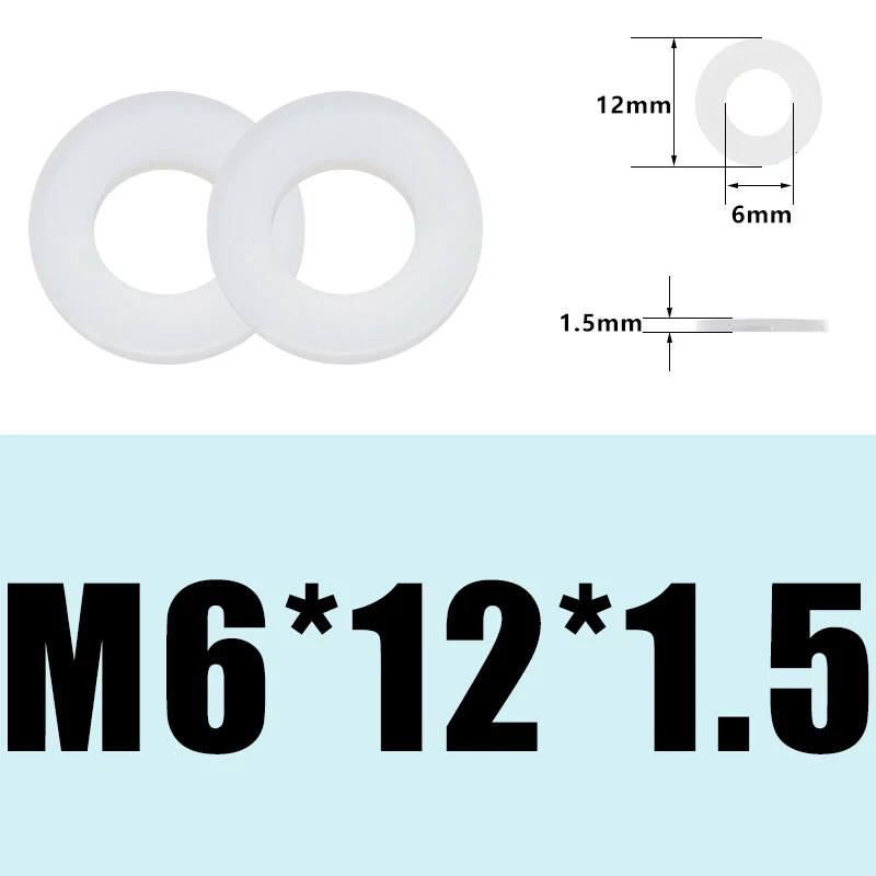 Country/Region of Manufacture: China Item Thickness: 1mm~2mm Material: Nylon Type: Nylon Flat Washers Brand: Unbranded Head Style: Round Shape: Round MPN: Does not apply Thread Size: M2/M3/M4/M5/M6/M8/M10/M12 System of Measurement: Metric