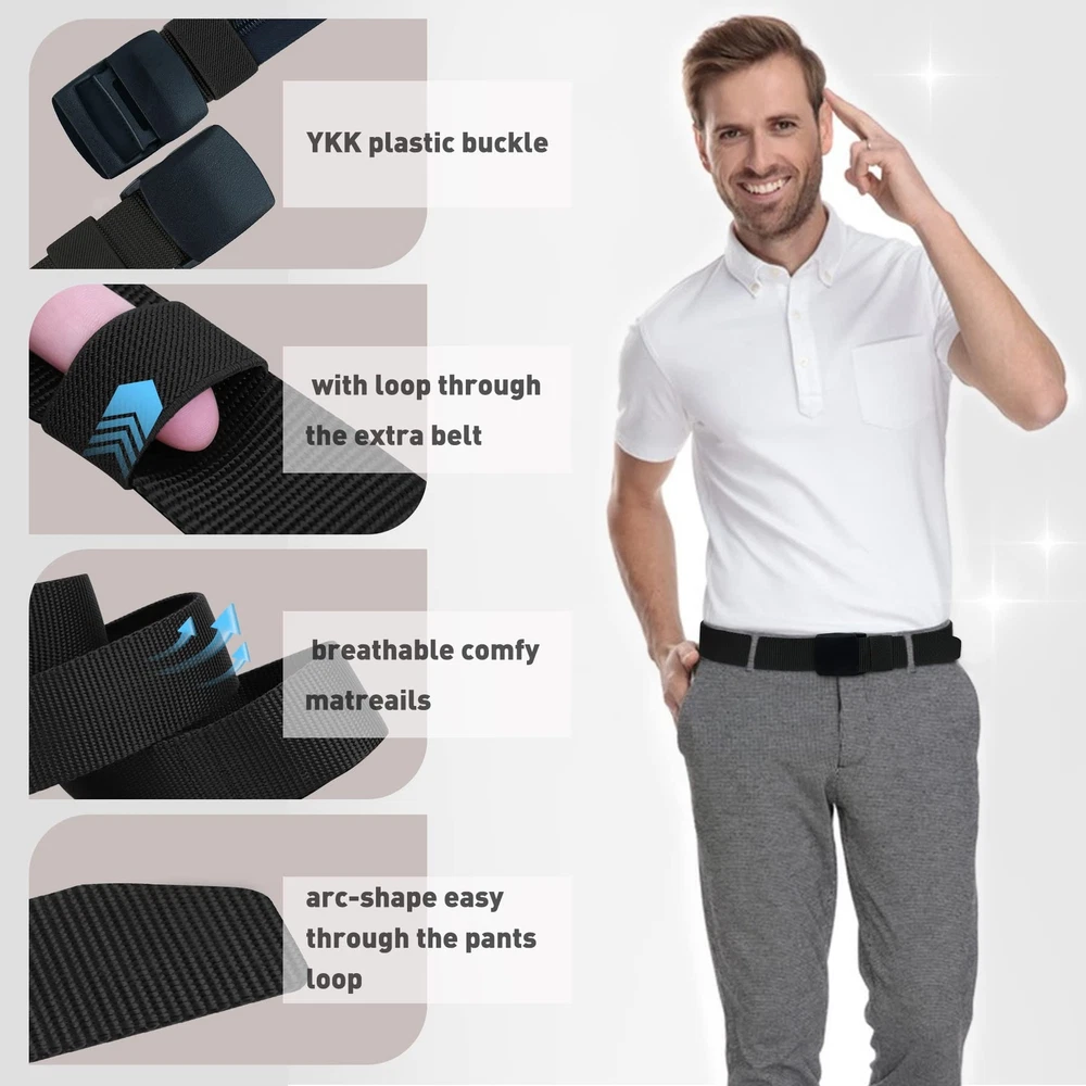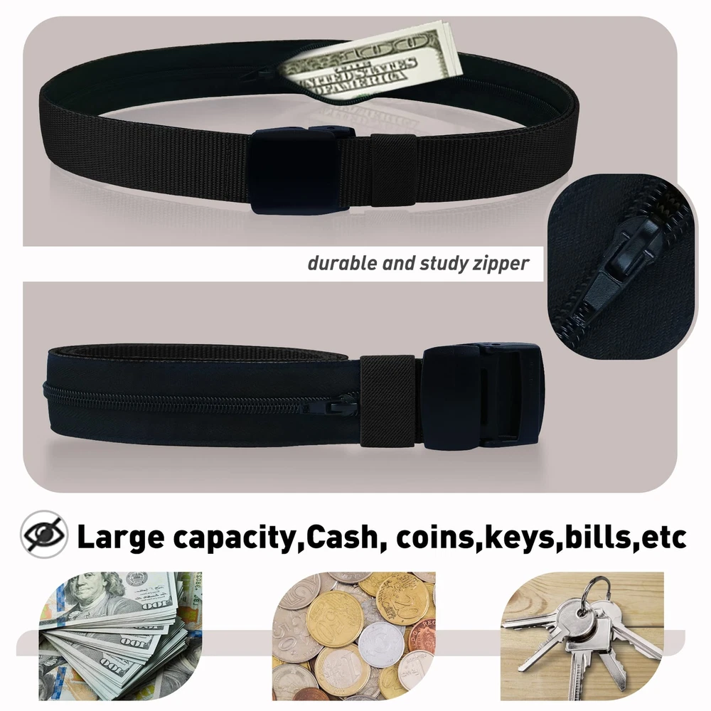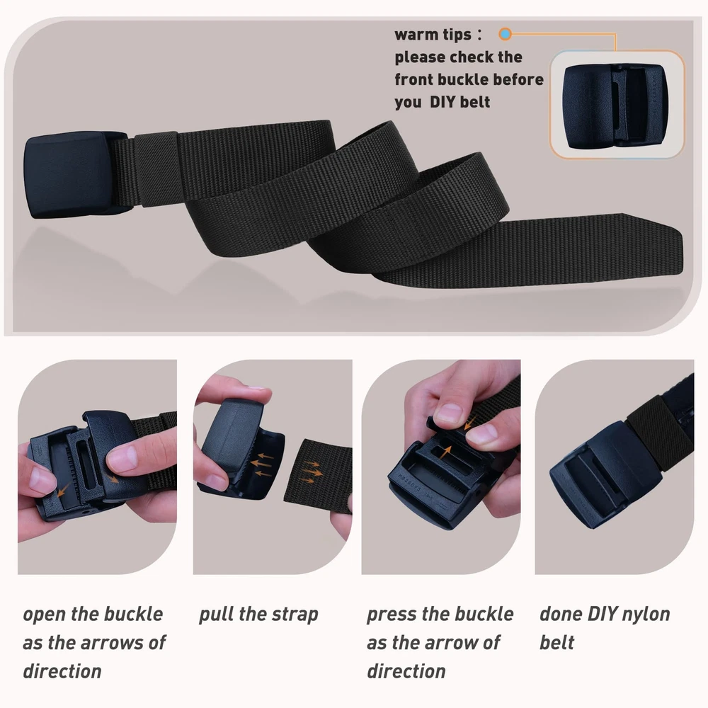 Description Superior Material: -Resisting nylon material that has a strong evaporation of sweat, more comfortable and breathable, feel more flexible. Adjustable Size: -Removable automatic Buckle,no holes in belt. -If the Strap is too long for you, you can trim the strap length to fit your size. Nickel free plastic buckle: -Non-metallic buckle for easy, quick clearance at security checkpoints. This Nylon Belt Suitable For Any Occasion Adjustable plastic buckle can easily match with jeans, casual pants, outdoor sports pants. Not only used for daily wearing, but also a good partner for outdoors sports ,hunting and shooting,etc. ➤Keep You Cash Safe from Pickpockets Money belt - Equipped with an easy-to-use hidden zippered security pocket. Safely conceals spare currency, a paper passport copy, and important travel documents from thieves. Airport Safe & Invaluable for any trip. Always be prepared for unexpected events during your travels. ➤Men Nylon Belt Fit Any Occasion - The width of these simple nylon belt is 1.5inch. Lightweight Belt, Quick Dry, Comfort Nylon material Strap with Plastic Buckle suitable for your outdoor sports (Hiking Belt, Ski Pant Belt, Snow Pants Belt, Climbing Mountains, etc), military uniforms matching and quickly passing security checkpoint. The most commonly wearing is daily wearing Best matching your slacks or jeans. ➤Men Nylon Nickel Free Tactical Belts - Nickel free international standard plastic buckle, feel comfortable and easy to wear. Ideal for police, firefighters, CCW, security guards, electricians and utility workers in need of a great duty belt to carry tools or weapons. Also great for paintball and airsoft gear! Attention the strap is No elastic. ➤Durable Design Money Webbing Belt - Made from quality nylon webbing and sturdy YKK plastic buckle. Provides you with a hassle-free airport security experience. Fully adjustable for Men and Women. ➤Precisely Size Choose and Considerate Service - If the strap is too long for you, you can trim the strap length to fit your size. You can also secure the excess the nylon belt tail with the loop.Considerate after-sale service on any question of these nylon web belts.