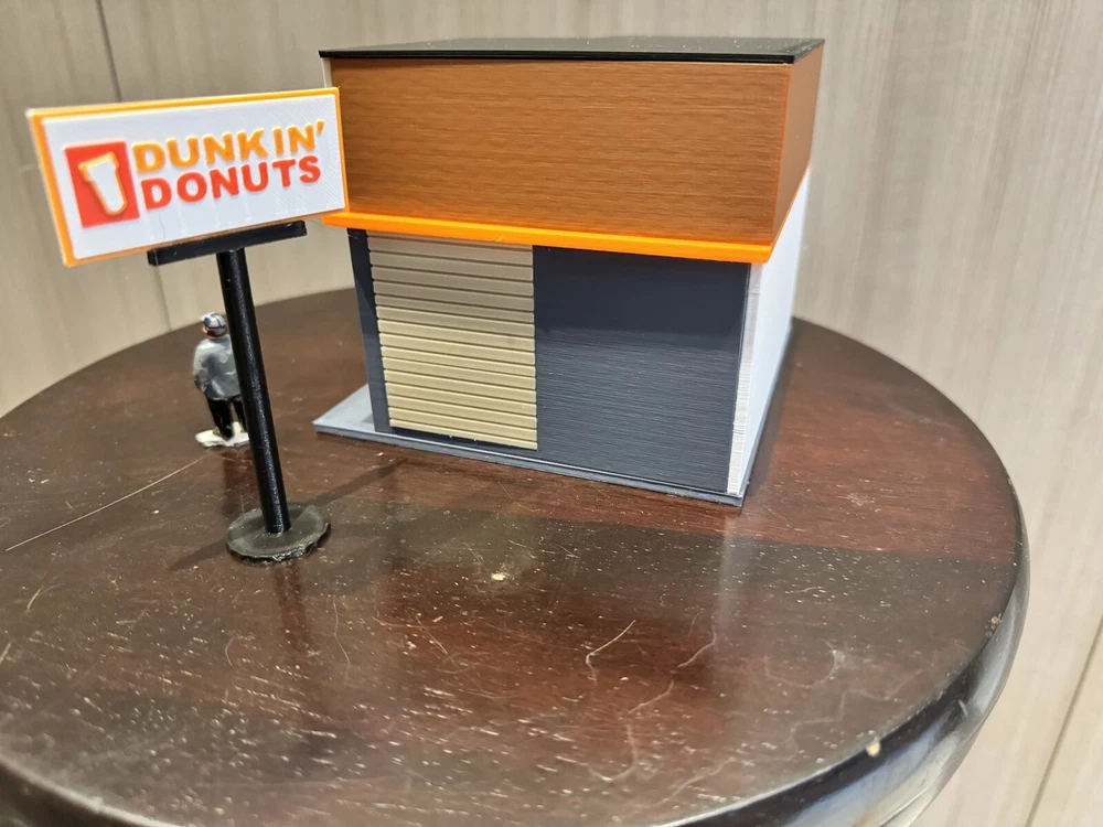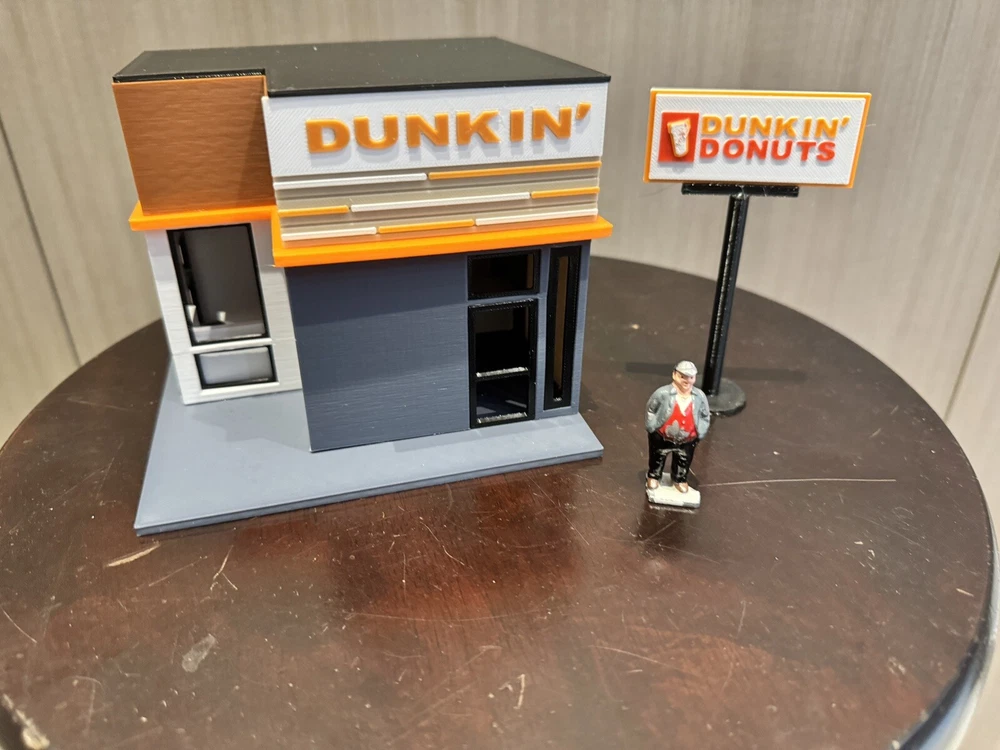 Here is a building we have all visited, this kit comes with everything shown, printed in color as displayed. Built and ready to display, roof will not be glued for access to the interior. Sorry no window glass included. This building is approximately 5 1/2 x 5 x 4 1/2 if used with the included base. Sorry Bob is our resident helper and not included in listing. Sorry US Shipping only Contact me with any questions. Assembly video available on my youtube page @flrailroaddog