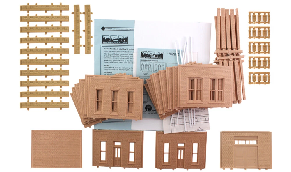 DPM-95200 Konrad Paint Company "BUILDING KIT" Add realism and interesting detail to finished buildings with Dry Transfer Decals and Model Graphics®. Use the Dry Transfer Burnisher to apply decals. See photos for footprint. Colors may vary from actual product. Kit includes: 2 Squared Entry Door 6 Squared Window Wall 8 Squared Double Window Wall 1 Blank Wall 1 Loading Door 11 Cornice 9 Pilasters - 5 pcs each 5 Cornice Pilasters - 5 pcs each 1 Clear Window Material - 2 1/4" x 3 1/2" (5.71 cm x 8.89 cm) 4 Clear Window Material - 5" x 5" (12.7 cm x 12.7 cm) 2 Roof Material - 6" x 8 21/32" (15.2 cm x 21.9 cm) 6 Roof/Corner Support Material - 0.08" x 7" (2 mm x 17.7 cm) General Modular Instructions Planning Sheet YOU ARE BUYING ONLY WHAT IS LISTED! COMES NEW IN FACTORY PACKAGE! Manufacturer: Design Preservation Models Sign up for my email newsletters by adding my E-Bay Store to your Favorites Check out more items in my store! Papa's Train Depot
