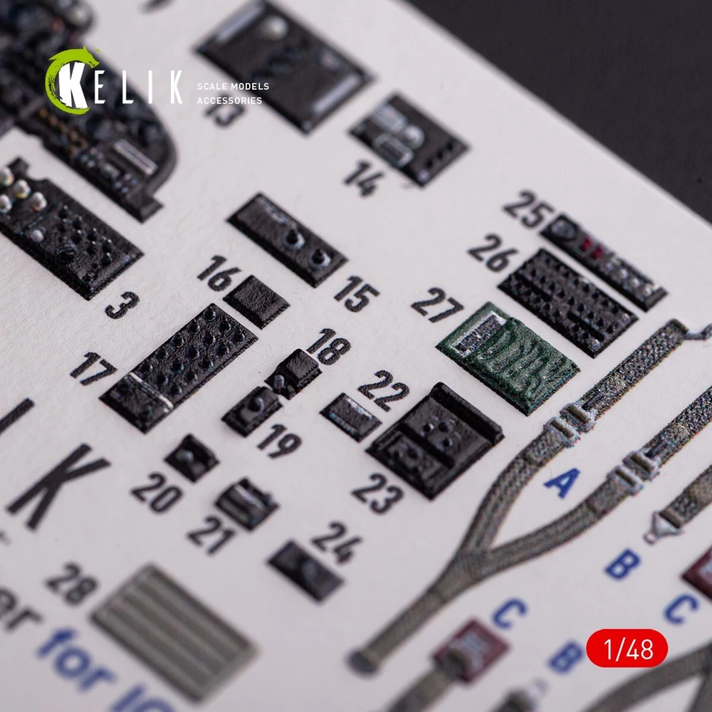 Cessna O-2A Skymaster interior 3D Decals "grey decoration type" for ICM kit Scale 1:48 for Plastic Model Kit KeliK K48080 High quality, easy to apply, add realism and detail to your model. Upgrade your scale models with Kelik 3D decals! Bring your scale models to life with Kelik incredible 3D decals . Our decals are made from the highest quality materials and are designed to provide a realistic and detailed look to your models. Scale: 1:48 Manufacturer: KeliK (Ukraine) Country/Region of Manufacture: Ukraine Condition: New in Box Category: Interior 3D decals Type of equipment: Aircraft Recommended kit: ICM kit / Cessna O-2A Skymaster Why choose Kelik 3D decals? High quality: Our decals are made from the finest materials and are printed with high precision. Realistic: Our decals are designed to provide a realistic and detailed look to your models. Easy to apply: Our decals are easy to apply and come with clear instructions. Durable: Our decals are durable and will last for years to come. Take your scale modeling to the next level with KeliK 3D decals! Kelik 3D decals are the perfect way to add a touch of realism to your scale models. Order yours today! ---------------------------- Scale model accessories are a wide range of parts, spares, and components that can help you make your model even more realistic and detailed. In our catalog, you will find everything you need to assemble and repair model cars, airplanes, ships, tanks, and weapons. Our accessories are made from high-quality materials and meet all standards. We offer a wide range of models and sizes so you can find what you need. Buy scale model accessories in our store and make your model even more unique!