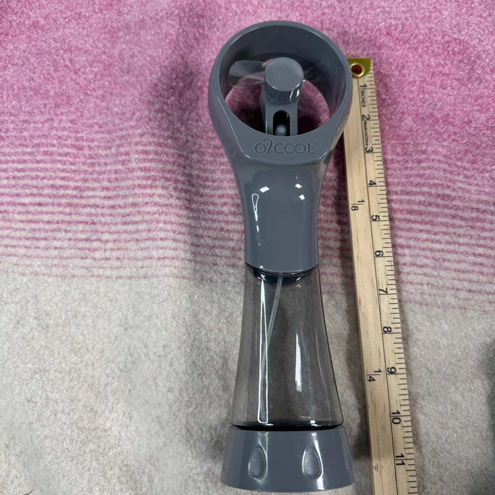 Stay cool anywhere with this O2COOL handheld misting fan . Fill the bottle, pump to mist, and switch on the fan for instant cooling. • Model family: Deluxe/Elite (FML0001 style) – 2×AA batteries (not included) • Approx. 10.5 in tall; soft, safe blades; thumb-pump mist trigger • Great for games, theme parks, camping, workouts, and travel Includes: fan only (no batteries). See photos for the exact item and condition. Price f