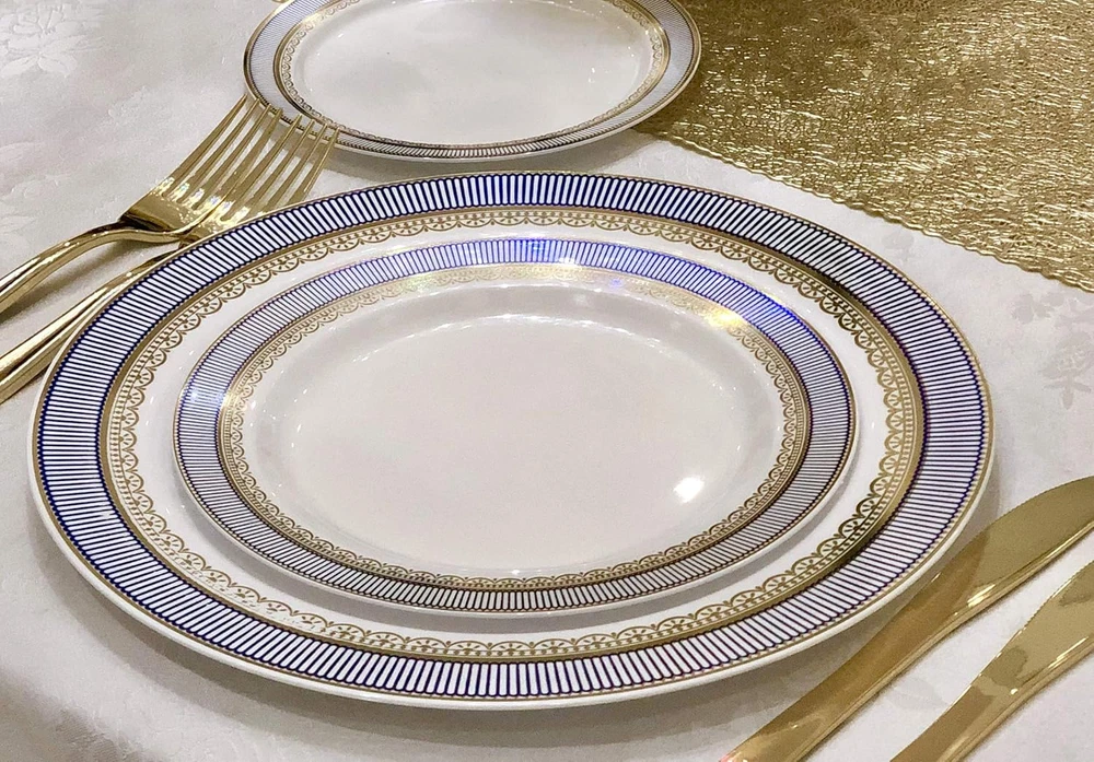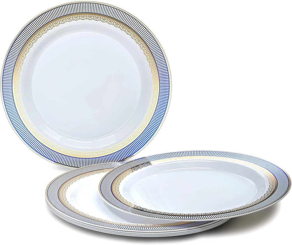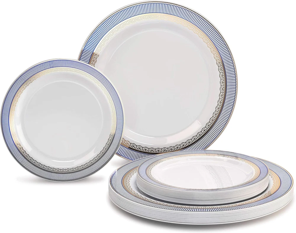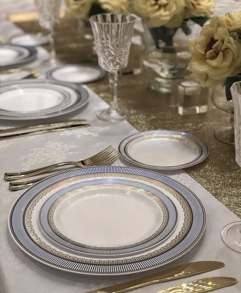 Store New Arrivals Add to Favorite View Feedback Contact " OCCASIONS " 50 Plates Pack (25 Guests)-Heavyweight Wedding Party Disposable Plastic Plate Set -25 X 10.5'' Dinner + 25 X 7.5'' Salad/Dessert Plates (Louvre in White W/Blue & Gold) Description Style Tableware Pattern Classic Theme Artistic Number of Pieces 50 Unit Count 1 Count Material Plastic Product Name plate Seasons All Seasons Is Microwaveable No Is Discontinued By Manufacturer No Package Dimensions 11.38 x 10.94 x 4.65 inches Is Dishwasher Safe No Item Weight 4.4 pounds Material Feature Disposable Occasion Wedding Special Feature Disposable Color Louvre White / Blue & Gold Finish Type Glossy Shape Round Recommended Uses For Product Appetizer, Desserts, Salad Size 50 Piece (25 Guest) Disposable Plastic Plates. Looks like real china. Ideal for holidays, large gatherings, weddings and special events, where you want an elegant and fancy look with the convenience of disposable. 50 Plates pack Includes: 25 x 10.5'' Dinner Plate + 25 x 7.5'' Appetizer/Dessert plates Design / Color : Louvre in White / Blue & Gold Made out of high gloss premium rigid disposable plastic. Single use, Recyclable and BPA free. Not microwave safe due to silver or gold decoration. Also available in packs of 120 pieces (60 + 60) / 240 pieces (120 + 120) Product Description ABOUT US We offer the best prices around on high quality products. Our E-store includes media such as books, movies, music and games while offering electronics, toys, sporting apparel, clothing, tools, general home, garden items and more. SHIPPING We are always working hard to ensure your package arrives as soon as possible. Please understand that some factors like weather, high postal traffic, and the performance of shipping companies are outside of our control. We offer free shipping to the lower 48 states and ship within 2 business days of payment, usually sooner. We do not accept P.O. Boxes. Please provide a physical address. For shipping outside of the continental USA, we only use eBay's Global Shipping Program.The item is shipped to KY and then sent to the rest of the world. International customers are responsible for all duties and taxes. Continue to check out in order to calculate costs for shipping the item to your country. Messages regarding eBay's Global Shipping Program MUST be directed at eBay EXCLUSIVELY. RETURNS We offer a 30-Day Return Policy on items which you are not completely satisfied with. You have the option for a full-refund or an exchange of the item. No returns are available on items shipped outside of the USA. PAYMENT We accept PayPal. CONTACT US This page content is yet to come Please ad us to your favorite seller and visit again later Thank You CUSTOMER SATISFACTION We try our very best to make sure every customer is completely satisfied. If there's a problem, message us! We're happy to help. WE ACCEPT Copyright © 2021 AutoDS. | All Rights Reserved