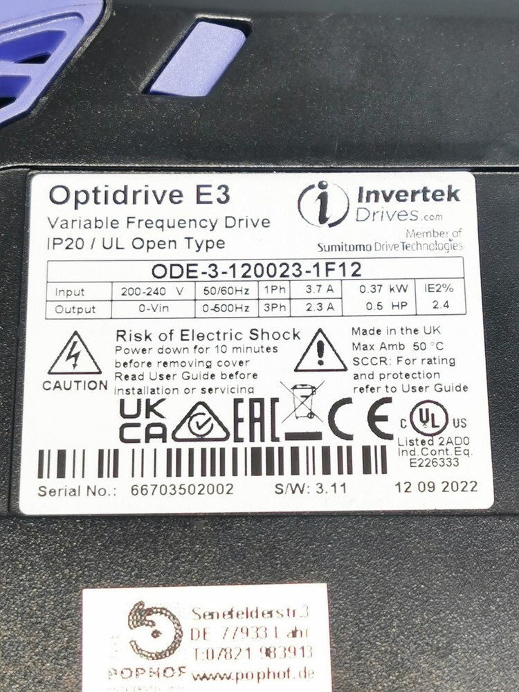 Handel mit Maschinen, Restposten, Rohmaterial und Lagerbeständen Öffnungszeiten: Mo.- Fr.: 09:00 - 17:00 ODE-3-120023-1F12 , Optidrive E3, Invertek Foto dient als Beispiel ! Kaufabwicklung - Kaufen Sie bequem per Auktion oder Sofortkauf den gewünschten Artikel hier bei Ebay. - Sie erhalten nach dem Kauf eine E-Mail von Ebay. Nutzen Sie die Kaufabwicklung um den Kauf abzuschließen. - Veranlassen Sie die Bezahlung per Überweisung, PayPal oder eine andere angegebene Zahlungsart. - Der Versand erfolgt unmittelbar nach Zahlungseingang. Versand - Gewicht bis 30kg schicken wir als Paket. Verarbeitungszeit 1 Werktag. - Gewicht ab 30kg schicken wir mit Spedition. Lieferzeit 7 Tage (bei der Zahlungsart Vorkasse ab dem Tag nach der Zahlungsanweisung des Kunden; bei anderen Zahlungsarten ab dem Tag nach Vertragsschluss). Hinweis! Geräte, die mit dreiphasigem Starkstrom betrieben werden, müssen gem. §13 Abs. 2 Niederspannungsanschlussverordnung (NAV) nur durch den Netzbetreiber oder einen in das Installateurverzeichnis des Netzbetreibers eingetragenes Installationsunternehmen angeschlossen werden. Trade with Machines, Surplus, Raw Materials, and Inventory Checkout Process - Buy the desired item conveniently via auction or Buy It Now here on Ebay. - After purchase, you will receive an email from Ebay. Use the checkout process to complete the purchase. - Make the payment via bank transfer, PayPal, or another specified payment method. - Shipping will take place immediately after receipt of payment. Shipping - Packages up to 30kg will be sent as a parcel. Processing time: 1 business day. - Items over 30kg will be sent by freight forwarding. Delivery time: 7 days (for prepayment: starting from the day after the payment instruction; for other payment methods: starting from the day after the contract conclusion).