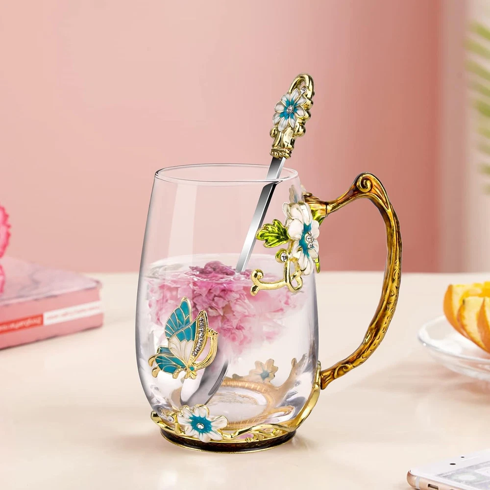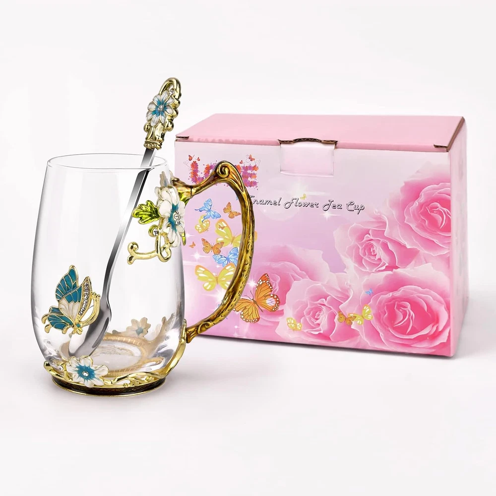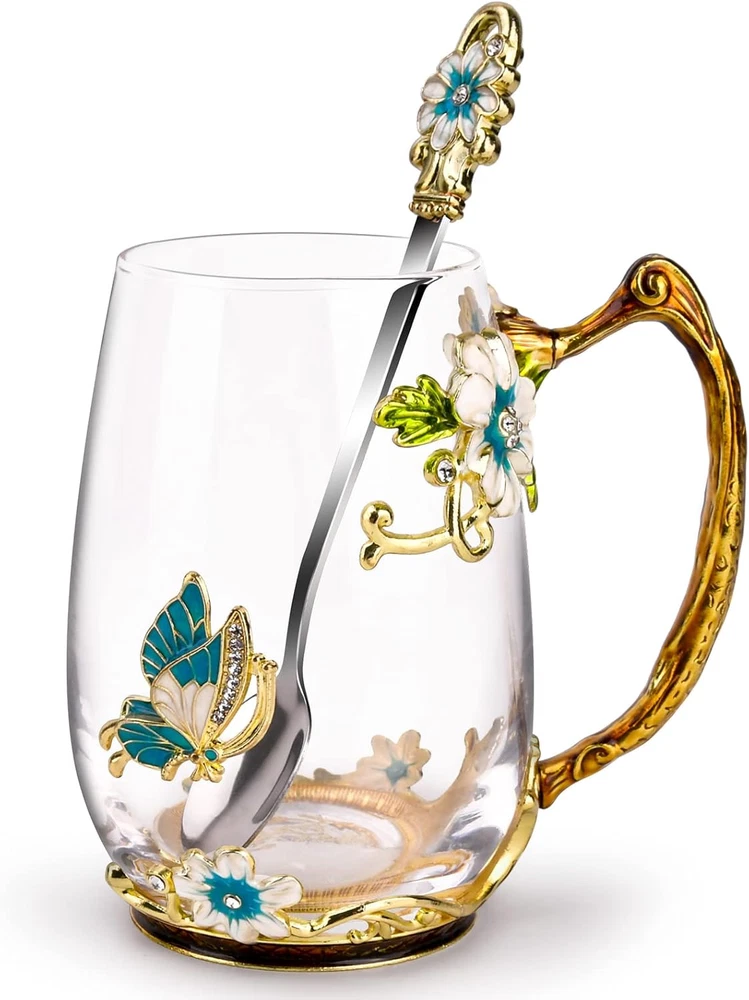 Store New Arrivals Add to Favorite View Feedback Contact OEAGO Birthday Gifts for Women Mom Glass Coffee Enamels Mug Best Mothers Day Butterfly Gifts for Her from Daughter Son Lead-Free Christmas Tea Cup with Spoon Sets Description Reusability Reusable Unit Count 1.0 Count Style Modern Number of Items 1 Occasion Mother's Day, Christmas, Birthday Item Weight 0.36 Kilograms Color Blue-Tall Pattern Floral Product Dimensions 4.9"W x 4.5"H Material Glass Capacity 300 Milliliters Shape Round Item Weight 12.5 ounces Theme Floral Brand OEAGO Material Feature Insulated Age Range (Description) Adult Recommended Uses For Product Home Included Components Handle Special Feature freezer_safe, Enamels Sturdy Specific Uses For Product Cold Drinks Product Care Instructions Hand Wash Only Finish Type Glossy Beautiful Elegant Mug:Our enamel glass mug is handmade and has an elegant style with butterfly and blue flower 3D designs,glass material of cup is glittering and clear. Never fade as time passed. The Perfect Gifts: Our glass mug look elegant and novel,and is the best friend gifts for women.It is the perfect gift for your mother, teachers, girlfriend on birthday, Mother's Day, Teacher's Day,Valentines Day,etc. Matching Spoon: The beautiful blue butterfly enamel glass mug comes with a matching enamel spoon to stir your beverage.Our tea mug and spoon, a complete set that will look great even as a decoration and leave a deep impression on your friends. More Safe Healthy: Our flower tea cup made of high quality eco-friendly sturdy glass material,Which is a healthier choice over plastic material.Our enamel glass mug contains no lead and barium harmful heavy metals, no toxicity, odor free, safe to use.Let you enjoy healthy lifestyles! Perfect Drinkware Companion:Our enamel glass mugs with handles can be used for warm or cold tea,and easy-grip handle feels great in your hand as you sip your morning brew or afternoon tea. Product Description Our enamel glass mug is attractive at your party, wedding and display on guest room and kitchen. And Our glass mug looks elegant and novel,which is the perfect gifts for your mother,girlfriend on birthday, Mother's Day,Valentines Day. Excellent Handmade The enamel color is made by hand painted, bright and strong, not easy to fade away and drop. Perfect 3D Designs Our enamel glass mug has an elegant style with butterfly and blue flower 3D designs,glass material of cup is glittering and clear. Beautiful Tea Cup Our tea mug is the perfect drinkware companion.Mug with handle can be used for warm or cold tea,and easy-grip handle feels great in your hand as you sip your morning brew or afternoon tea. The Perfect Gifts Our glass mug look elegant and novel,and is the best friend gifts for women.It is the perfect gift for your mother, teachers, girlfriend on birthday, Mother's Day, Teacher's Day,Valentines Day,etc. ABOUT US We offer the best prices around on high quality products. Our E-store includes media such as books, movies, music and games while offering electronics, toys, sporting apparel, clothing, tools, general home, garden items and more. SHIPPING We are always working hard to ensure your package arrives as soon as possible. Please understand that some factors like weather, high postal traffic, and the performance of shipping companies are outside of our control. We offer free shipping to the lower 48 states and ship within 2 business days of payment, usually sooner. We do not accept P.O. Boxes. Please provide a physical address. RETURNS We offer a 30-Day Return Policy on items which you are not completely satisfied with. You have the option for a full-refund or an exchange of the item. No returns are available on items shipped outside of the USA. PAYMENT We accept PayPal. CONTACT US This page content is yet to come Please ad us to your favorite seller and visit again later Thank You CUSTOMER SATISFACTION We try our very best to make sure every customer is completely satisfied. If there's a problem, message us! We're happy to help.