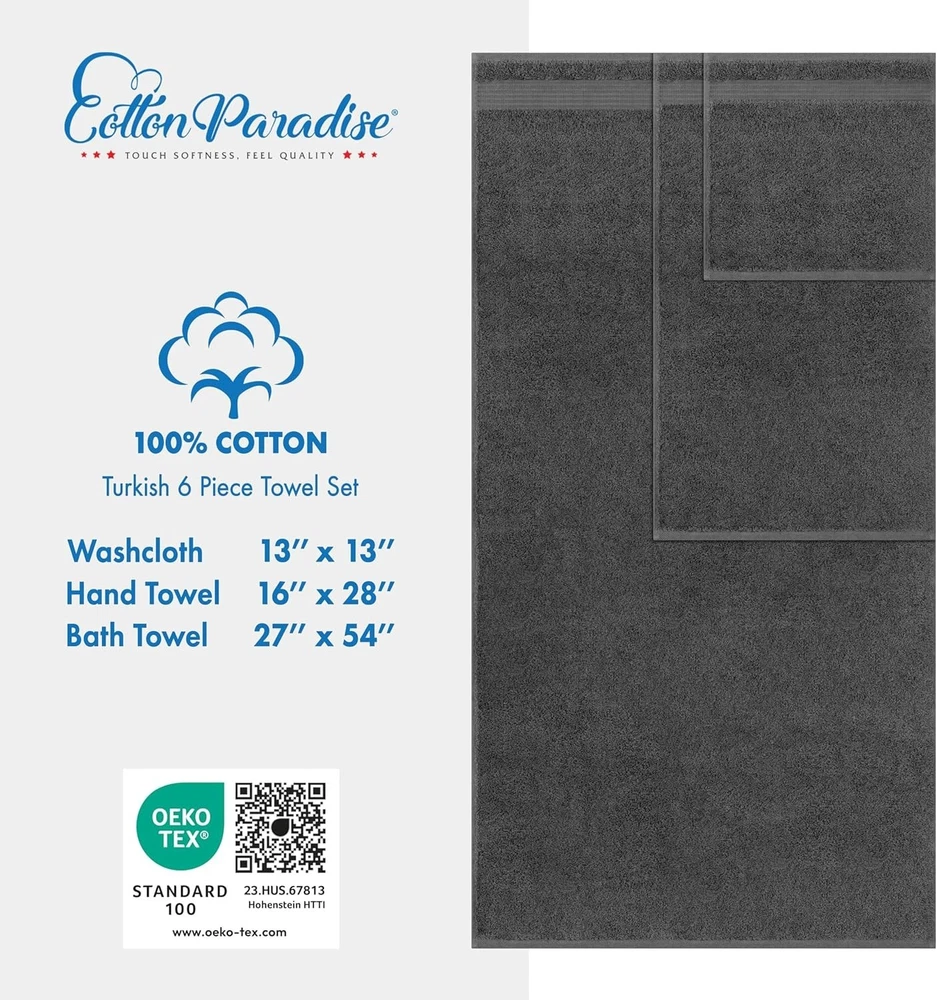 Luxury Grey 6-Piece Bath Towel Set - Soft Turkish Cotton for Ultimate Comfort