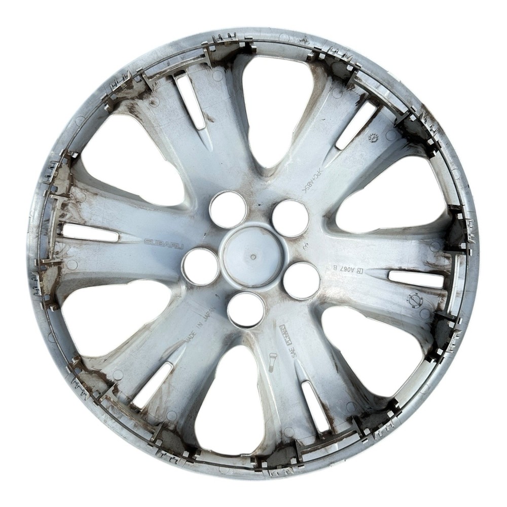 Used condition. • Scuffs, scratches, curb rash, and wear are visible (see photos). • Some discoloration and dirt on the back side. • No cracks or major structural damage; clips on the back appear intact. • Sold as-is — please review all images carefully. Description: • Genuine OEM Subaru hubcap • Size: 16-inch • Finish: Silver • Fits various Subaru models (primarily Legacy and Outback from around 2005–2009; verify fitment) • Includes one (1) hubcap only, no additional hardware Important: Please double-check your wheel size and vehicle compatibility before purchasing.