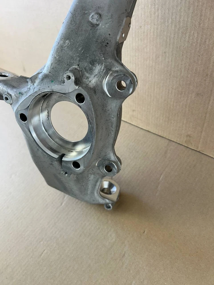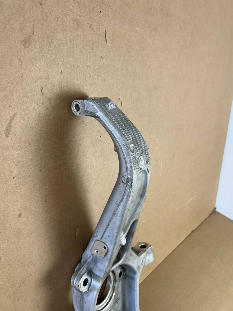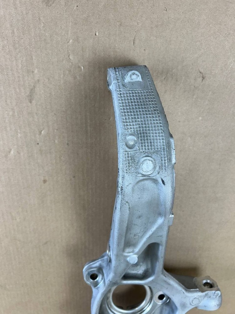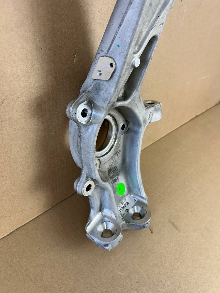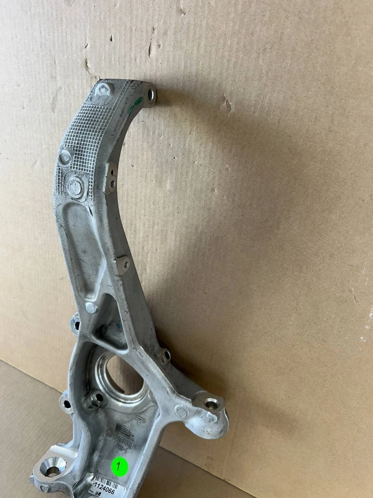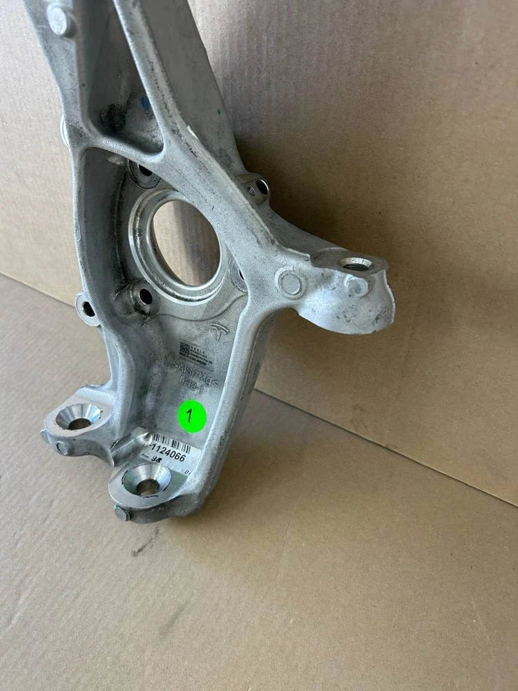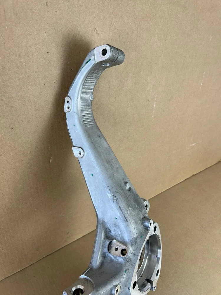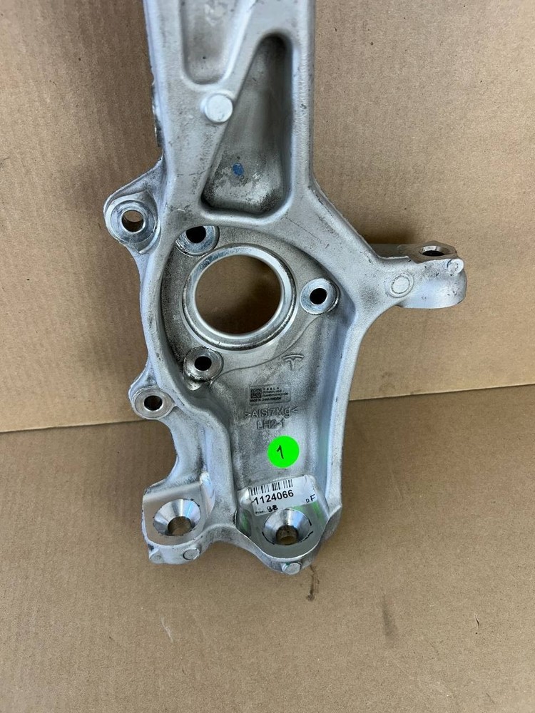 The OEM 2017 - 2023 Tesla Model 3 Front Left Driver Steering Knuckle 1044311-00-E is a replacement part designed specifically for Tesla vehicles. This steering knuckle is located on the front left side of the vehicle, specifically for the driver's side. It is an OE/OEM part number 104431100E, 1044311-00-H, 1044311-00-G, 1044311-00-F, 1044311-00-E, 1044311-00-D. This high-quality part is essential for maintaining the smooth and efficient operation of the Tesla Model 3's steering system, ensuring a seamless driving experience for the user.
