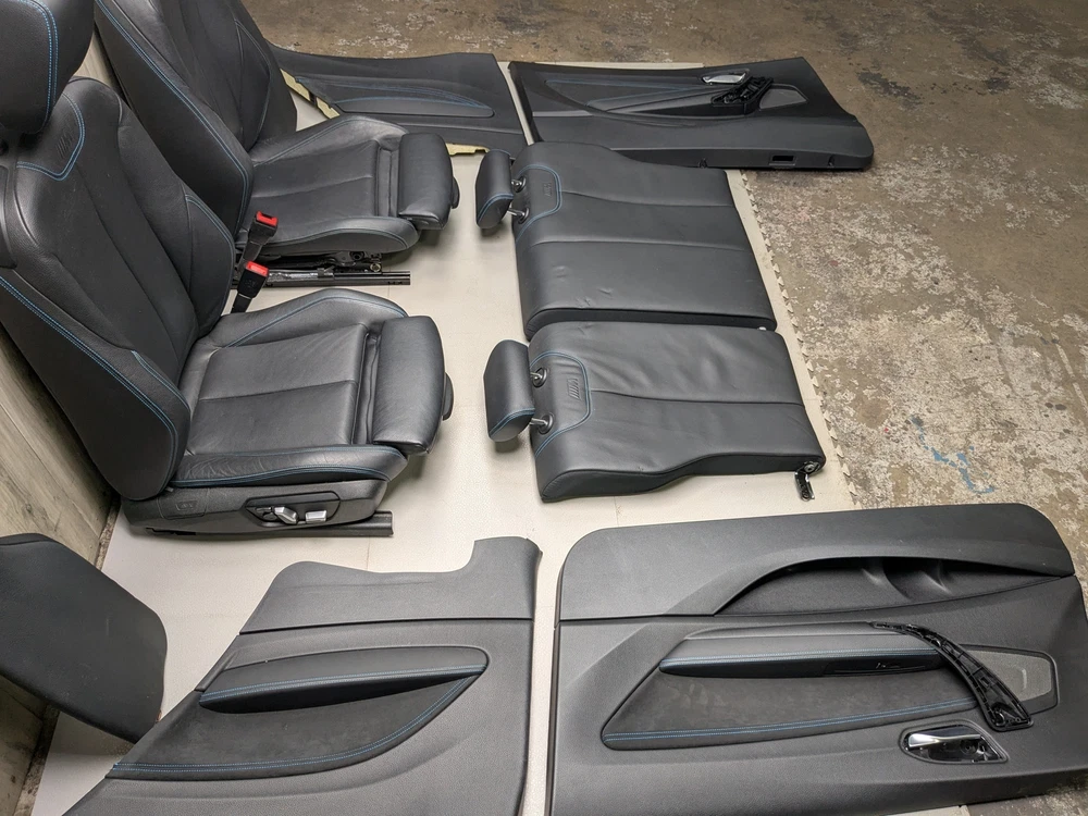*OEM BMW F22 F87 M2 Driver Passenger Seats Door Panels Interior w Blue Stitching SKU: 35675 Brand: BMW Condition: Used Notes: *Missing rear lower seat section! INCLUDED but missing in pictures; arm rest, emergency brake leveler and floor mat set of 4 all with blue stitching! MUST INDICATE COMMERCIAL ADDRESS AT THE CHECKOUT! LEDER DAKOTA/Schwarz Kontr.Blau (LCNL) We're on Instagram! Follow us! oe_mgarage All parts are used unless otherwise noted! Please understand that being that parts are used there may be some wear and tear & scratches etc. We cannot guarantee the condition of paint & or that paint color will be an exact match as yours. We try to show as much of the condition as possible through photos and notes! Original Car: 2018 BMW M2 Series: F87 Vin Number: WBS1J5C59J7B70349 Mileage: 47128 Engine: N55B30T0 Transmission: 1 Part number: 0 Notes: *Missing rear lower seat section! INCLUDED but missing in pictures; arm rest, emergency brake leveler and floor mat set of 4 all with blue stitching! MUST INDICATE COMMERCIAL ADDRESS AT THE CHECKOUT! LEDER DAKOTA/Schwarz Kontr.Blau (LCNL) SKU: 35675 Location: 117 IF ITEM IS MARKED AS FREIGHT SHIPPING AND YOU ARE SHIPPING TO A RESIDENTIAL ADDRESS OR A BUSINESS WITHOUT A FORKLIFT/LOADING DOCK Our shipping carriers charge extra fees for these deliveries! Please inquire BEFORE purchasing We will invoice you for it post purchase Thank you 90 day warranty on Engines purchased through eBay! 30 day warranty otherwise Engine is guaranteed to turn & the cylinder block is not cracked & and the cylinder head is not cracked Engine warranty details: Any maintenance items such as gaskets & fluids & seals & filters & spark plugs & belts & aluminum bolts (the ones holding valve cover & oil pan & etc.) are not warrantied and must be replaced Failure to replace valve cover gasket & oil pan gasket & new bolts for said gaskets voids the warranty Any aftermarket or performance parts or software present on the car voids the warranty Engine components such as timing chain & vanos gears & vacuum pump & chain guides are not warrantied. Other engine components external to the cylinder block and cylinder head are not warrantied. Any parts left on the engine are not warrantied and are for installation convenience only & buyer assumes all risk and responsibility reusing them. Overheating engine voids all warranties & Low oil or oil starvation voids all warranties for engine All work must be performed by a licensed & ASE certified mechanic shop or BMW dealership & failure will result in voiding all warranties Warranty covers the cost of the item! It does not cover shipping or labor! Used condition items may have minor imperfections. Please look at pictures for details! And understand that this is a USED part after all! Compatibility is the responsibility of the customer to ensure!! Please feel free to reach out with any questions!!