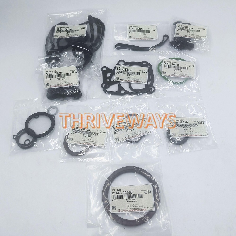 Product Description Condition:New Manufacturer Part Number: 20910-2GK07 Fitment: For 2016-2020 Kia Optima 2.4L - Theta 2 Engine Sedan - 4Door 5P For 2015-2020 Kia Sorento 2.4L - Theta 2 Engine Wagon - 5Door 5P, Wagon - 5Door 7P For 2019-2020 Hyundai Santa Fe DOHC - GDI Wagon - 5Door 5P For 2016-2018 Hyundai Santa Fe Sport DOHC - GDI Wagon - 5Door 5P For 2015-2019 Hyundai Sonata DOHC - GDI Sedan - 4Door 5P For 2015-2018 Hyundai Tucson DOHC - GDI Wagon - 5Door 5P Package included: Overhaul Gasket Kit Notice: 1.If you are not completely satisfied with your purchase, you may return it for a refund or exchange it for a replacement. We only require that you contact us within 14 days of receiving your item and return it in the same condition it was received. 2.Please check the model before your purchase and compare the position of the screw hole In case of wrong purchase. 3.If you have any questions, please contact us by email and we will solve them for you.