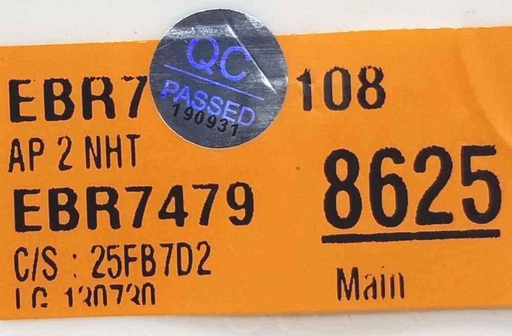 Manufacturer Warranty: None Set Includes: Main Control Board Compatible Model: EBR74798625 Seller Notes: “Free Same-Day shipping guaranteed before 3 pm CST on business days!” UPC: Does not apply Type: Main Control Board gtin13: Does not apply Color: Multicolor Capacity: 15 lb Suitable For: Agitator Washing Machine, High-Efficiency/Impeller Washing Machine Brand: LG Power Source: Electric MPN: EBR74798625, AP5680746 Model: LG EBR74798625 Compatible Brand: LG Installation: Built-In/Integrated