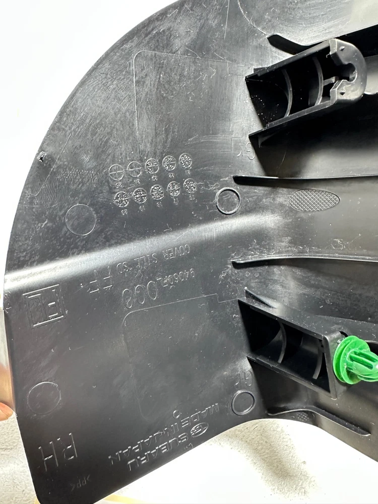 Universal Fitment: Yes Brand: Subaru Country/Region of Manufacture: Japan Color: Black Placement on Vehicle: Front, Right OE/OEM Part Number: 94060FL000VH, 94060-FL000-VH, 94060 FL000 VH Manufacturer Part Number: 94060FL000, 94060-FL000, 94060 FL000 Number in Pack: 1 Features: Durable, Easy Clean, Easy Installation Vintage Part: No Finish: Matte Performance Part: No Material: Plastic Items Included: See photo Type: Cowl Trim Manufacturer Warranty: 1 Month