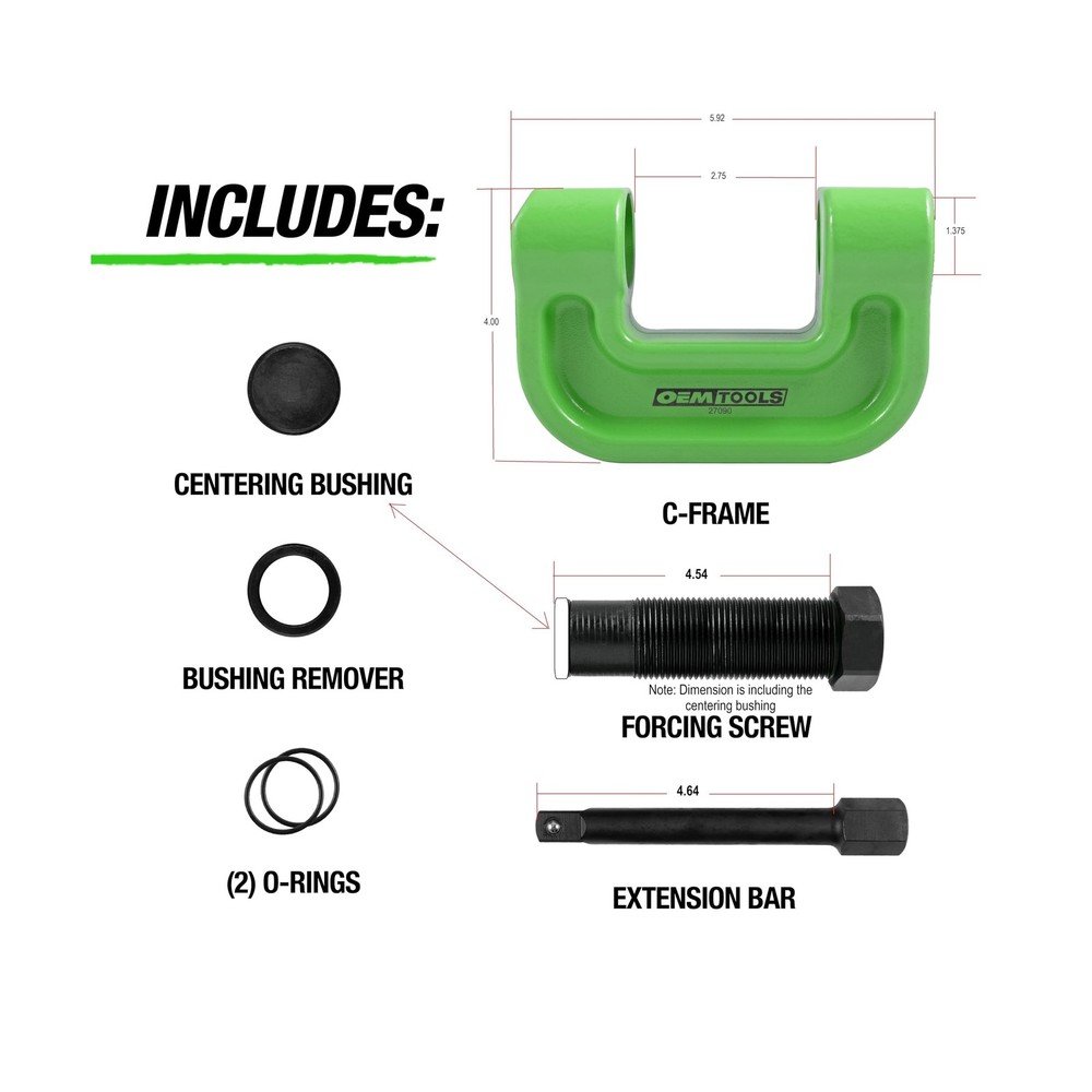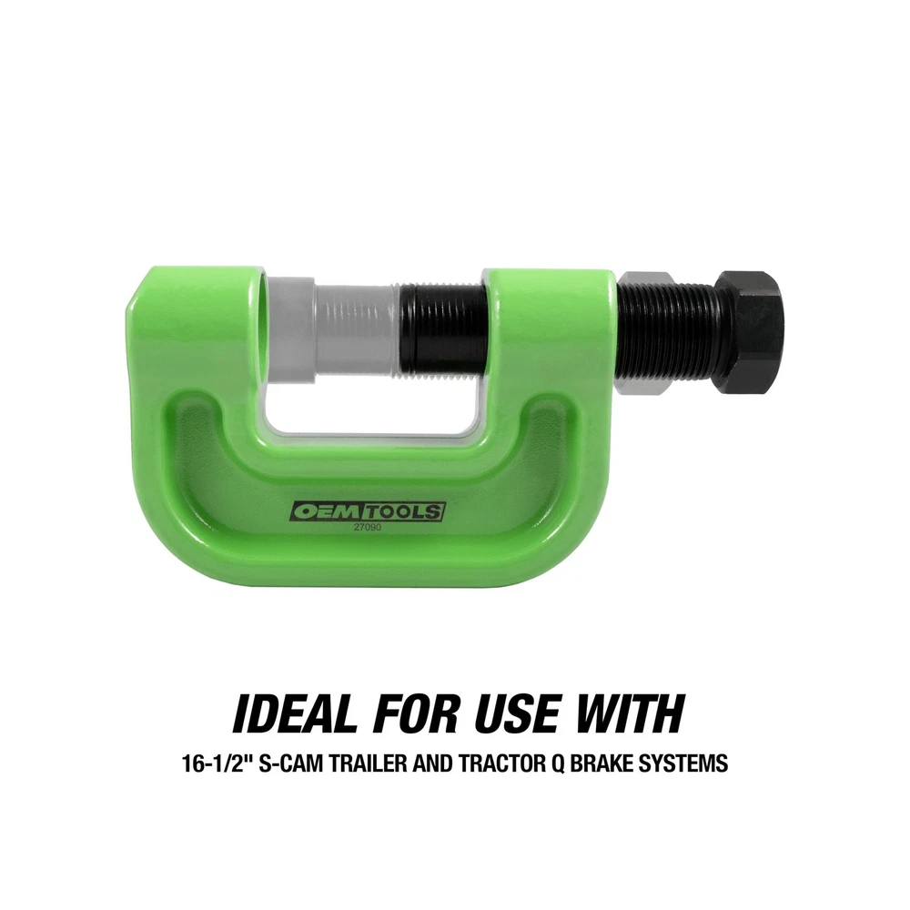 OEMTOOLS 27090 Brake Anchor Pin Press, 10-Ton Capacity for S-Cam Brake Systems, No Hub Removal Brake Tool, High-Grade Steel, Compatible with 1/2" Impact Wrench Description The OEMTOOLS 27090 Brake Anchor Pin Press is engineered for efficiency and durability in heavy-duty brake maintenance. Designed for use on 16-1/2” S-Cam trailer and tractor brake systems, this brake anchor pin press delivers a robust 10-ton capacity, making it perfect for tough brake jobs. Crafted from high-grade steel, this tool provides long-lasting strength and reliability, ensuring it withstands demanding tasks. With a rigid C-frame design, the press simplifies brake pin and bushing removal, eliminating the need for hub or dust shield removal, and saving you valuable time. Its manual operation requires no hydraulics, making it versatile and easy to use with a 1/2" impact wrench for added convenience. Ideal for mechanics who need reliable semi truck brake tools and heavy duty bushing removal, this tool is essential for any professional toolkit. Whether you're dealing with rusted pins or completing routine brake maintenance, the OEMTOOLS 27090 provides the power and precision you need to get the job done efficiently. Enhance your collection of brake tools with this high-grade brake anchor pin press and experience reliable performance on every job. Features: 10-Ton Capacity Press: This anchor pin bushing driver features a 10-ton capacity, making it ideal for heavy-duty brake jobs on 16-1/2 S-Cam trailer and tractor brake systems. Use with a 1/2" impact wrench for efficient pin and bushing removal. High-Grade Steel Construction: Manufactured from high-grade steel, this anchor pin removal tool offers exceptional strength and durability, ensuring reliable performance during demanding brake maintenance tasks on trucks and semi-trailers. No Hub Removal Needed: Simplify your brake maintenance with this brake press that requires no hub or dust shield removal, saving you time and effort on complex brake systems, making it an essential tool for service truck mechanics. Versatile Manual Operation: Designed for manual use, this tool does not require hydraulics, providing flexibility and ease of operation in various brake service environments. Compatible with a 1/2" impact wrench for added convenience. Designed for Tough Jobs: This brake anchor pin press is built to handle tough jobs, including removing rusted pins and bushings. Perfect for service truck tools, it is a must-have for mechanics working on heavy-duty brake systems. Product Details: Manufacturer: OEMTOOLS Brand: OEMTOOLS Model: 27090 Item Weight: 7.06 pounds Product Dimensions: 8.1 x 4.5 x 2.2 inches Item model number: 27090 Manufacturer Part Number: 27090 Special Features: 10-Ton Capacity, High-Grade Steel, No Hydraulics Not Required, Rigid C-Frame Design Date First Available: April 19, 2022 Delivery We Do Not Ship Outside of the Continental US. Return Policy All items qualify for returns within 30 days of receipt. Buyer is responsible for return shipping on any item that is not damaged. Feedback We take our reputation seriously, we buy and sell online, so we understand the value of trust. If you are unsatisfied with your order, please contact us and we will work with you to resolve it to your satisfaction.
