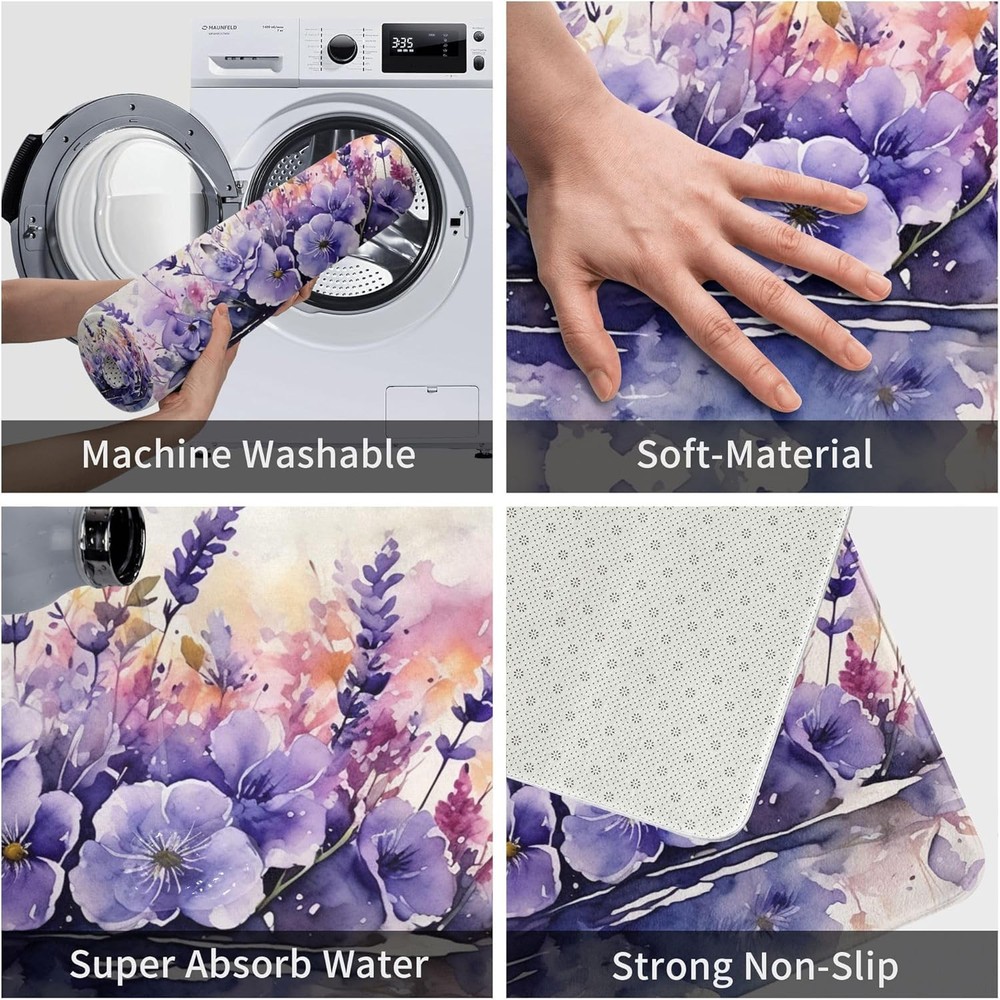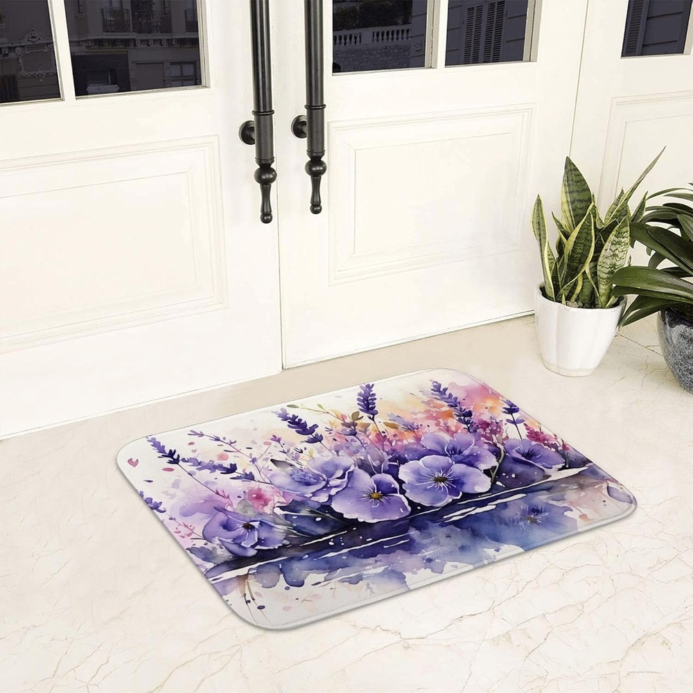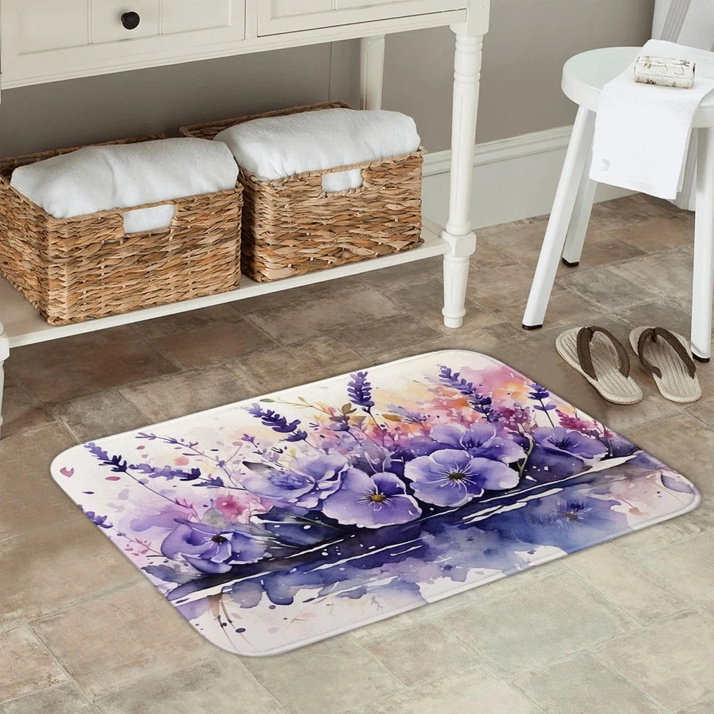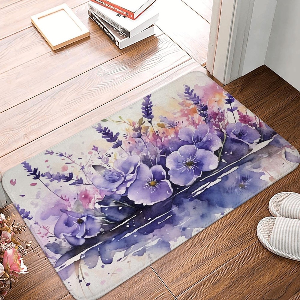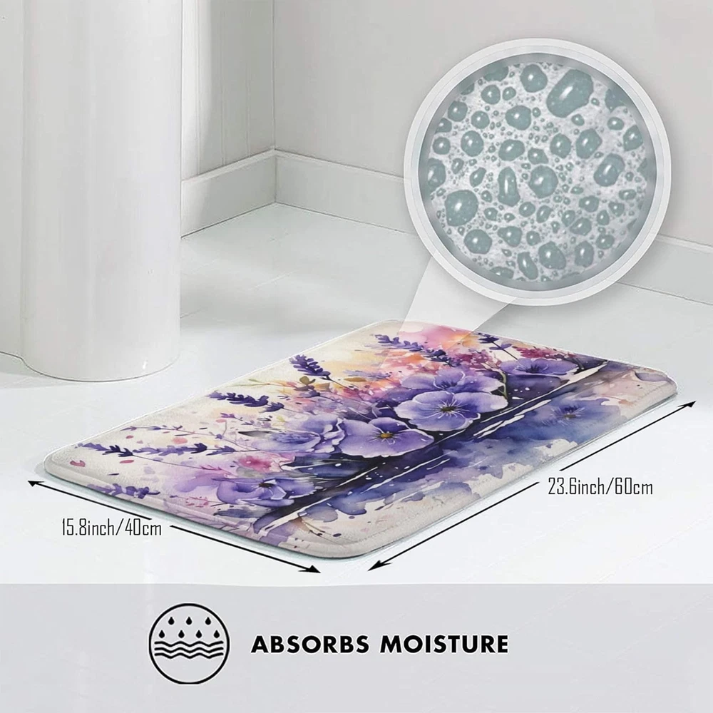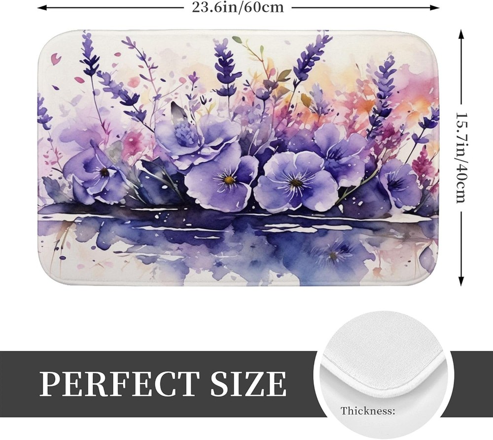OHORTEB Bath Mat Rug, Non-Slip 24" x 16" (Rectangular), Purple - Floral Product Details Brand: OHORTEB Size: 24" x 16" (Rectangular) Material: Polyester Weave Type: Tufted Pile Height: Low Pile Construction Type: Machine Made Back Material Type: Polyester Color: Purple - Floral Indoor/Outdoor Usage: Indoor Is Stain Resistant: Yes Product Care Instructions: Machine Wash Pattern: Floral Shape: Rectangular Special Feature: Non Slip Product Dimensions: 24"L x 16"W Rug Form Type: Bath Mat Style: Modern Water Resistance Level: Not Water Resistant Model Name: Purple Floral Bath Mat Item Weight: 10.2 ounces Manufacturer: OHORTEB Item model number: 123 Super absorbent: The bathroom rug is made of ultra-soft microfiber, which is soft to the touch, and the fluffy short plush fabric absorbs water quickly, keeping your feet dry and clean. Non-slip design: The bottom of the kitchen mat is made of non-slip Rubber material, which has strong grip and non-slip performance to keep the bath rug in place securely and prevent you from slipping and falling when you get out of the bathtub or sink. Unique design: The exquisite pattern design makes the bathroom rug more artistic, suitable for various decoration styles, and adds more beauty to your home. Easy to clean: The kitchen mat is machine washable, and the washing method is simple. You can put it in the washing machine or hand wash it, and it can be dried quickly without worrying about deformation. Wide application: The size of the door mat is 16 inches x 24 inches/ 40 cm x 60 cm. It is suitable for various occasions, such as bathroom, kitchen, living room, bedroom, front door, balcony, etc. Elevate your bathroom decor with the OHORTEB Bath Mat Rug. This non-slip mat features a rubber back for superior grip, ensuring your safety on wet floors. Its super absorbent material quickly soaks up moisture, keeping your floors dry and preventing slips. The vibrant design adds a touch of whimsy and art to your bathroom or kitchen. Measuring 16 inches by 24 inches (40.6 cm by 61 cm), this mat is the perfect size for placing in front of sinks, showers, or entryways. Easy to clean and maintain, the OHORTEB Bath Mat Rug is a practical and stylish addition to any home. Bring a pop of color and artistic flair to your living space with this decorative and functional floor mat.
