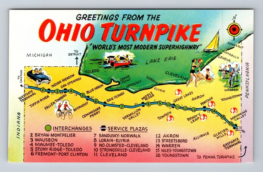 OH-Ohio, Turnpike, Landmarks, Souvenir, Antique, Vintage Postcard