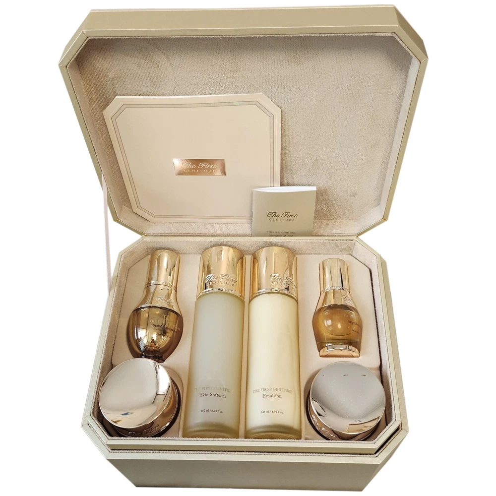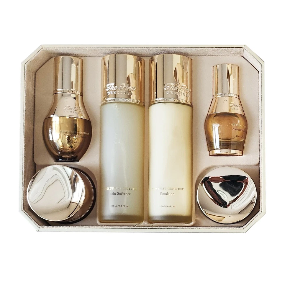 Ingredients: peony extract, Transkin EGF/hGF Expiration Date: 2027 Size: Jumbo/Family Pack UPC: Does not apply Active Ingredients: peony extract, Transkin EGF/hGF Product Line: OHUI The First Geniture Volume: Family Set gtin13: Does not apply Skin Type: All Skin Types Body Area: Face Main Purpose: Age-Defying, Age Spots, Early Signs of Aging, Firming, Lifting, Nourishing, Regenerating, Wrinkles Type: Special Set Period After Opening (PAO): 12M Department: Women Formulation: Cream, Emulsion, Foam, Lotion, Serum Set Includes: Cleanser, Day & Night Treatment, Moisturizer, Regenerating, Rejuvenation, Restructuring, Skin Repair, Toner Features: Contains Plant Stem Cells Country/Region of Manufacture: Korea, Republic of Brand: O HUI