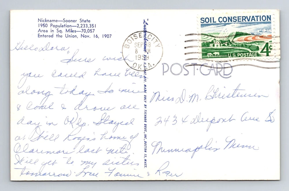 Unit of Sale: Single Unit Subject: Cities & Towns Country: USA Type: Printed (Lithograph) Era: Vintage Postage Condition: Posted Original/Licensed Reprint: Original Region: Oklahoma Theme: Cities & Towns City: Oklahoma Country/Region of Manufacture: Unknown