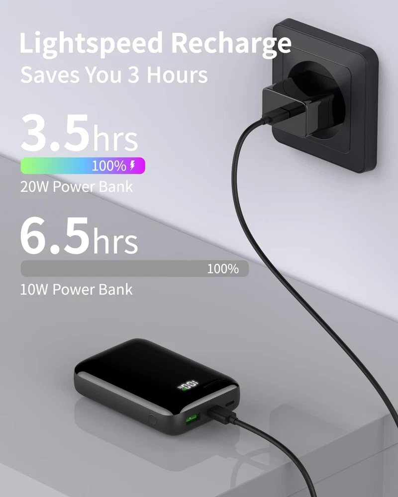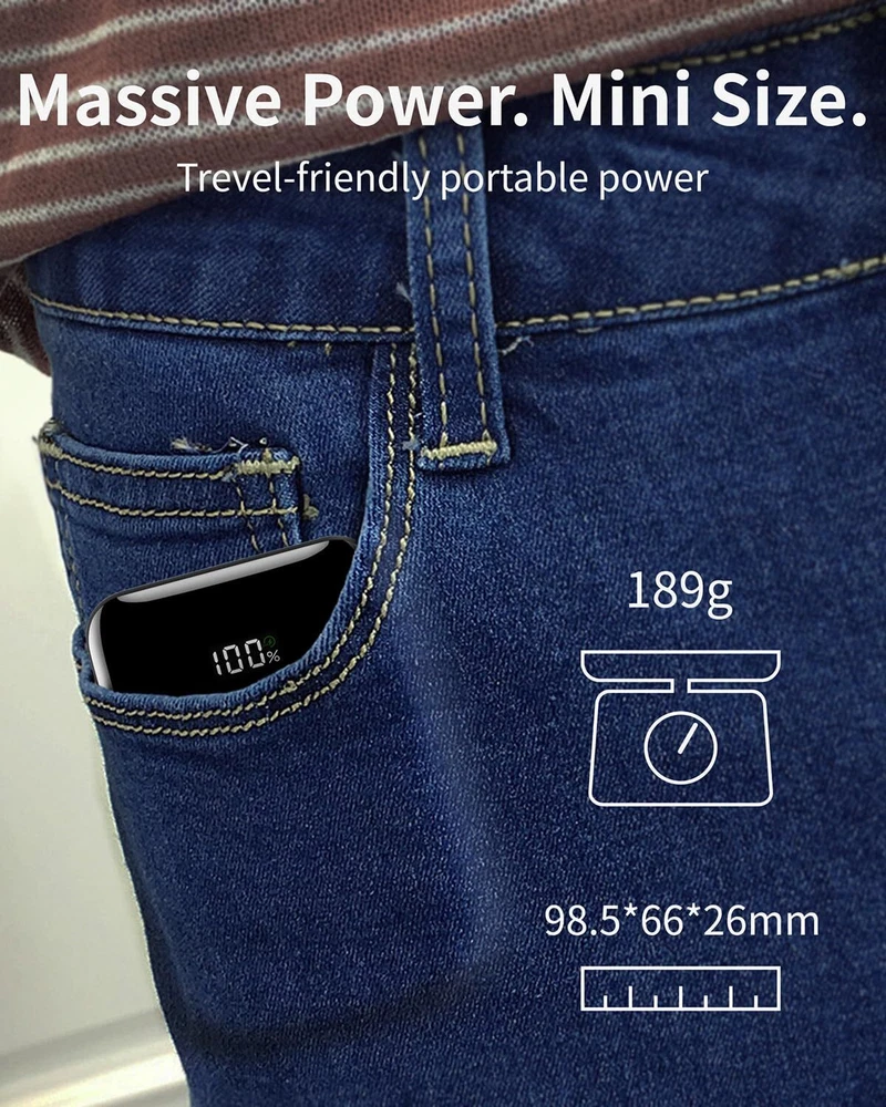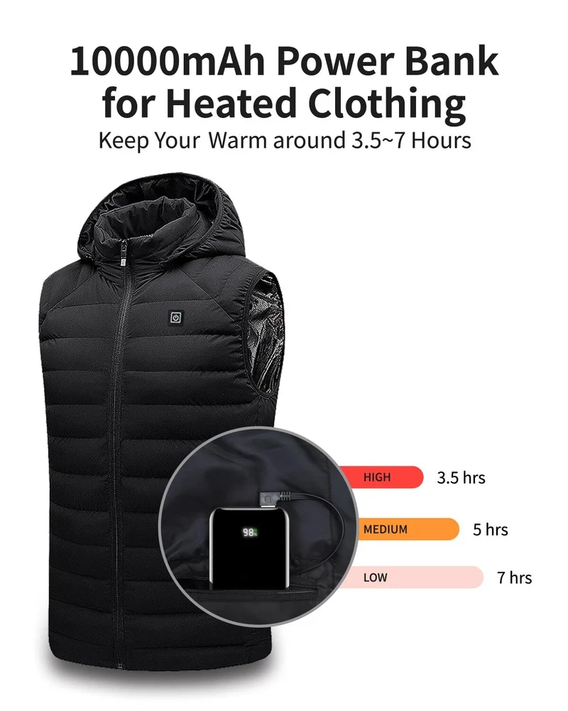 【Notice】It doesn't work with 7.4V or 12V DC input heated vest, heated jacket. 【Designed for 5V USB Heated Clothing】It is compatible with 5V/2A input heated Vest, Heated Jacket and other heated Clothing. The professional customized chip provides continuous and stable output for the heating Clothing, which is safe and reliable. 10000mAh capacity can provide up to 7 Hours for your heating Clothing, and the compact body is conducive to putting it in the pocket. 【Massive Power. Mini Size】One of the Smallest 10000mAh external Battery easily slip into your pocket or bag to keep you going all day. 【Accurate LED Power Digital Display】The usb power bank built-in advanced smart digital display technology, power display accuracy is up to 100% which ensures you know the remaining power clearly and never missing recharging in time. 【Intelligent Safety Protection】 High quality Li-polymer cell with multi-protect system microchips. Supports over-charged, over-discharged, over-voltage, over-current and short circuit protection; 【What You Get】1 x 10000mAh Portable Charger, 1 x USB C Cable, 1 x User Manual.