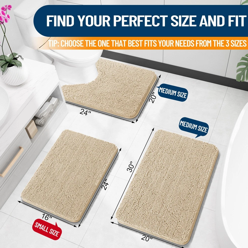 OLANLY Bathroom Rugs 24x16 Extra Soft Absorbent Chenille Bath Rugs Rubber Bac...