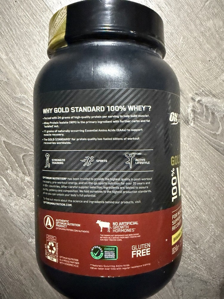 ON Gold Standard Whey 100% Protein Powder 2 lb Optimum Nutrition Banana Cream.