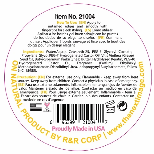 UPC: 696399210047 Suitable For: Hair Formulation: Gel gtin13: 696399210047 Brand: ON NATURAL Ingredients: Grape Seed Oil, Shea Butter Styling Effect: Edge Control Features: Cruelty-Free/No Animal Testing Type: Hair Gel