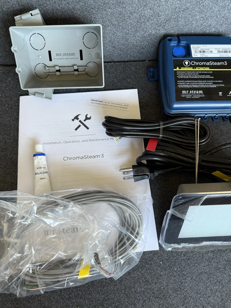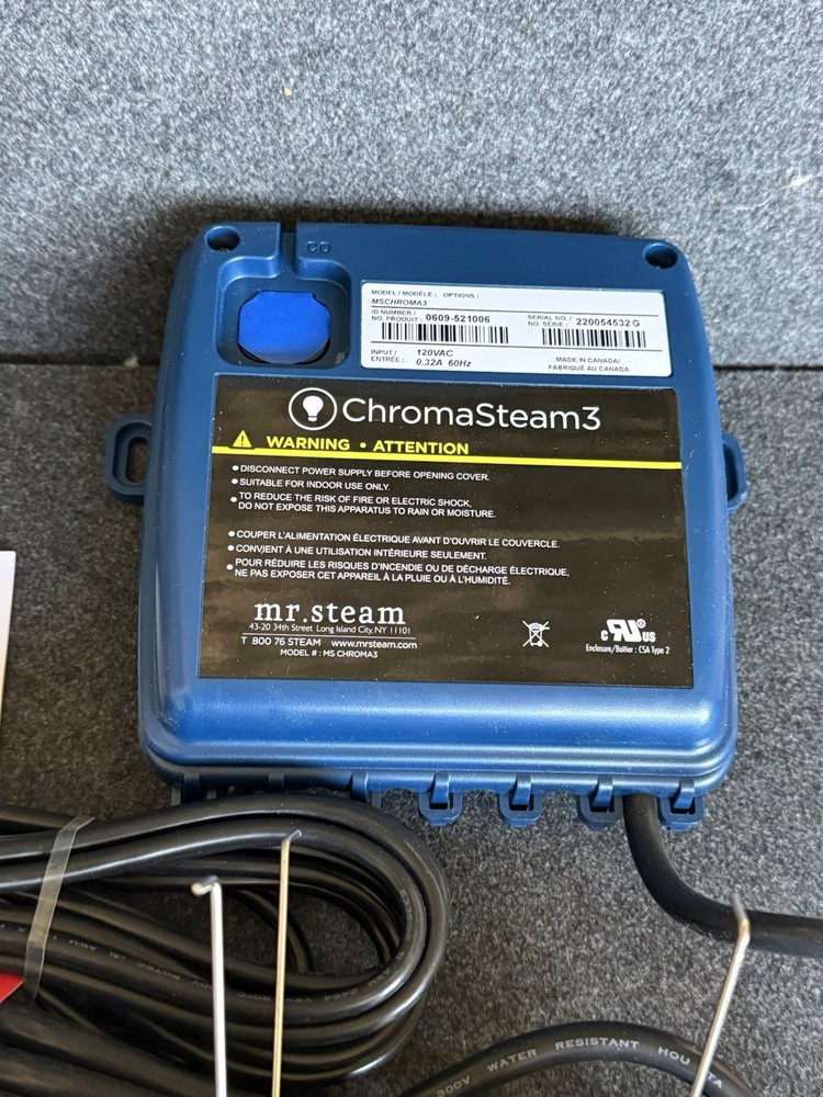 ON SALE FOR LIMITED TIME/QUANTITIES $399 Brand new Mr steam MSCHROMA3 kit in black Ships in Original Box Also available in White color This is the complete kit brand new in box and it comes with all the accessories and wires. This unit works with mr steam isteam3 control unit SERIES only This is not compatible with Mr steam ISTEAMX CONTROL UNIT This is a no return item please do your research before buying it. Any questions please feel free to message us. Most item ship the same or next day Only one unit available in this color