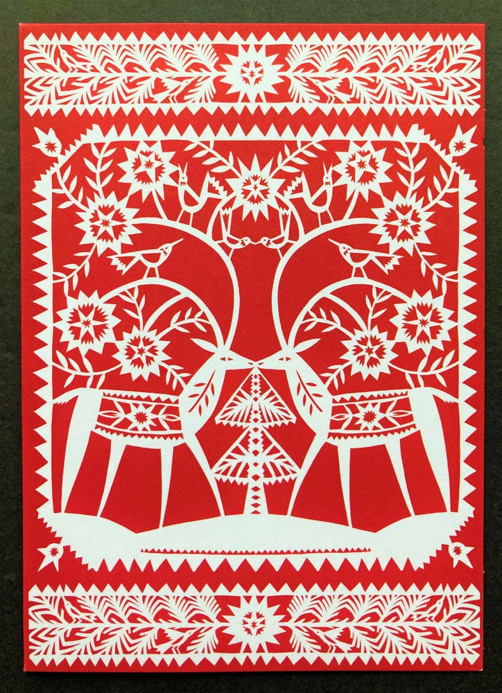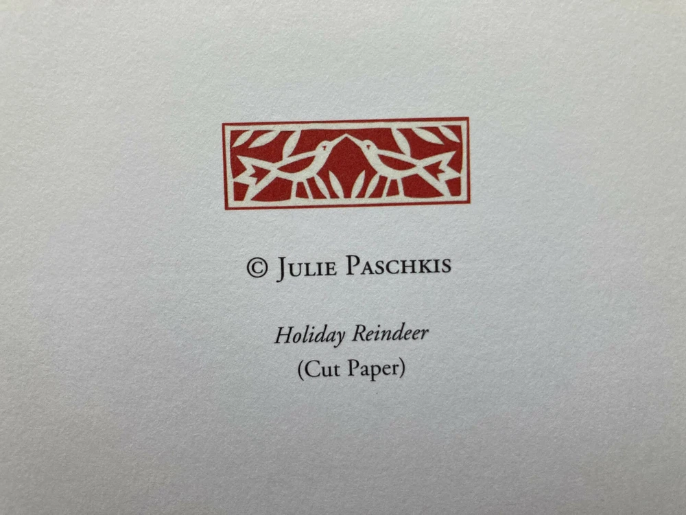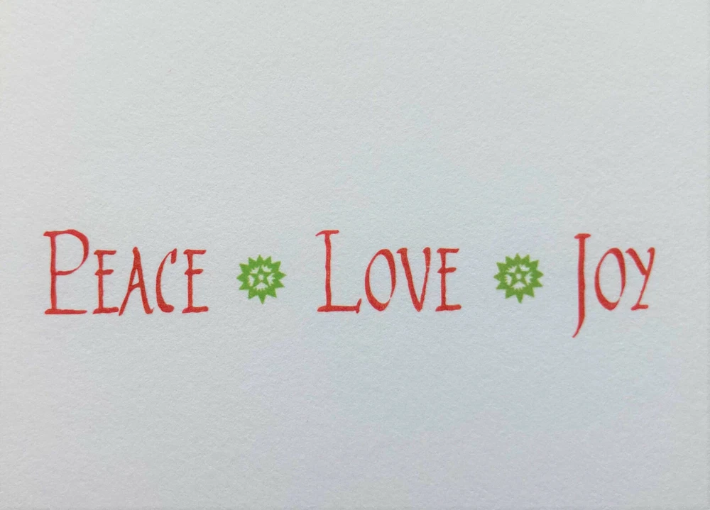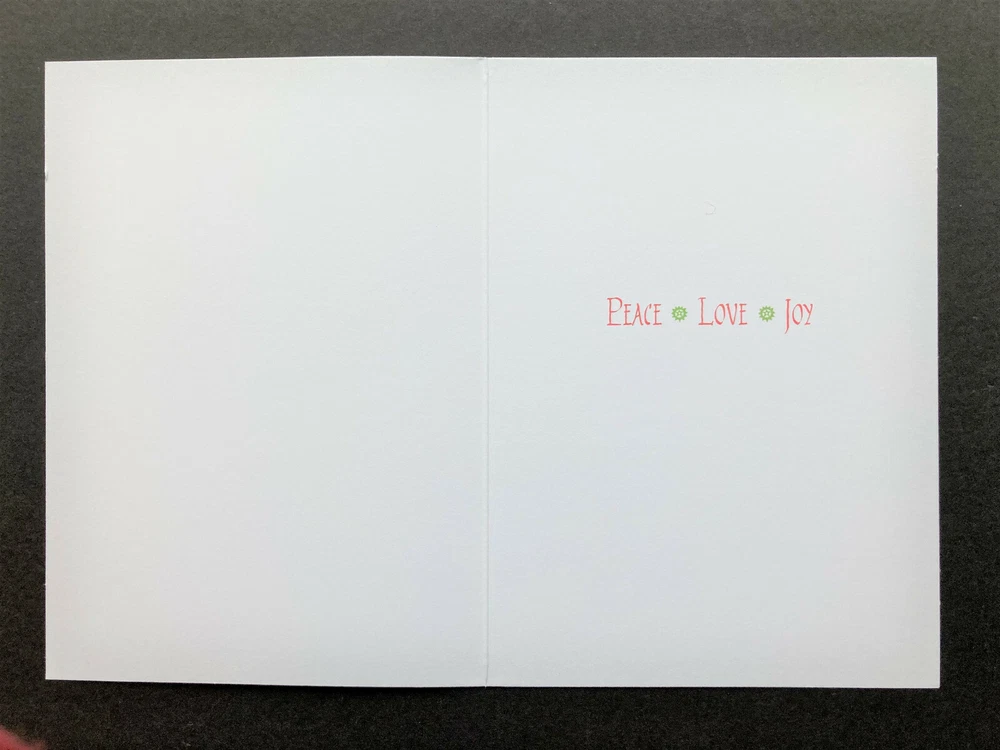 Our buyer’s feedback on this item: Thank you...just perfect! Will happily buy from you again! Really like the card selection in this shop. Quick service, too. Many thanks! ONE SINGLE new large Christmas/holiday greeting card with one solid white envelope - Gorgeous artwork by Julie Paschkis - Inside inscription: Peace * Love * Joy - Folded card measures approximately 5 x 7 inches - Printed in USA on matte heavy card stock - From a stock of loose cards; card will be sealed in a clear protective sleeve before being packed for shipment - SAVE $ if you order more than one of the cards in this listing (while supplies last)! To see how much your total would be, add desired number of cards to your cart, then go to your cart - items added to your cart can always be revised (quantity) or deleted. You will not be charged unless and until you check out. Check out our store - We do our best to offer you the most beautiful and extraordinary paper products we can find Save us as a seller - we frequently add new items QUESTIONS? Please don't hesitate to message us SHIPPING: Your order will be shipped same or next business day by USPS first class / ground advantage mail. Shipped from a smoke-free environment. We are happy to combine shipping with other purchases from our store if reasonably feasible (in general, does not apply to free-shipping items); just message us. We routinely give partial refunds when appropriate for postage over-payment on multiple greeting card orders placed at the same time from more than one of our listings. PROBLEMS WITH YOUR ORDER? If you have any concerns or issues upon receiving your item, we ask that you message us directly so that a satisfactory solution can be found - We will respond as soon as possible. RETURNS: In the event of a return, buyer must return the item(s) in the same condition as when received. Buyer pays for return shipping, and the original shipping cost will not be refunded. Thanks for looking!