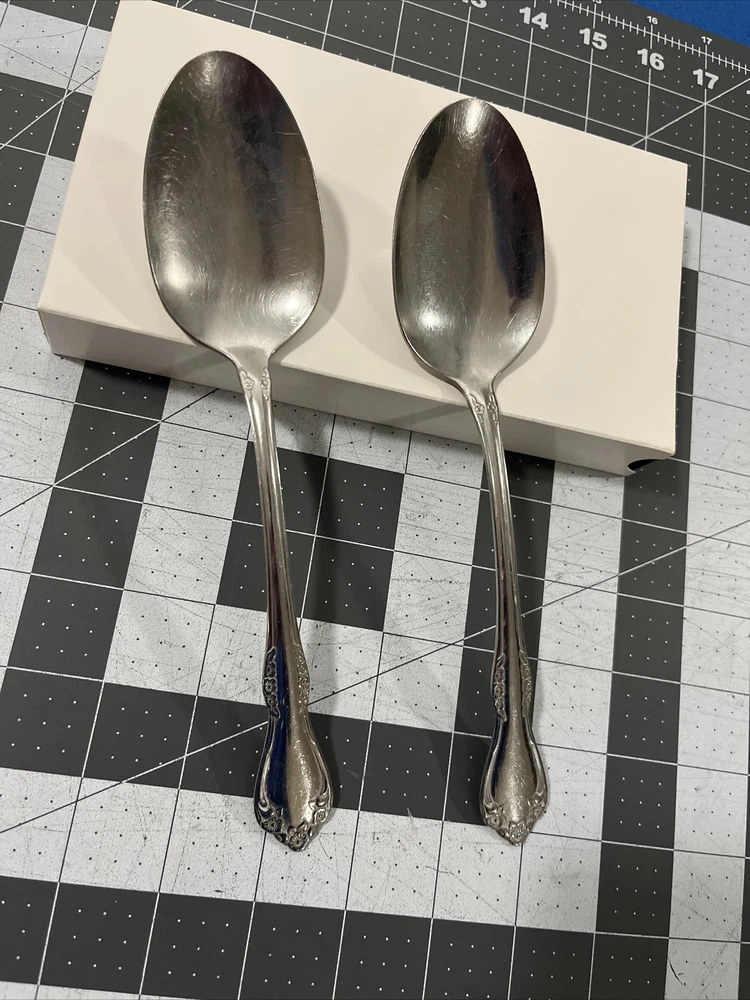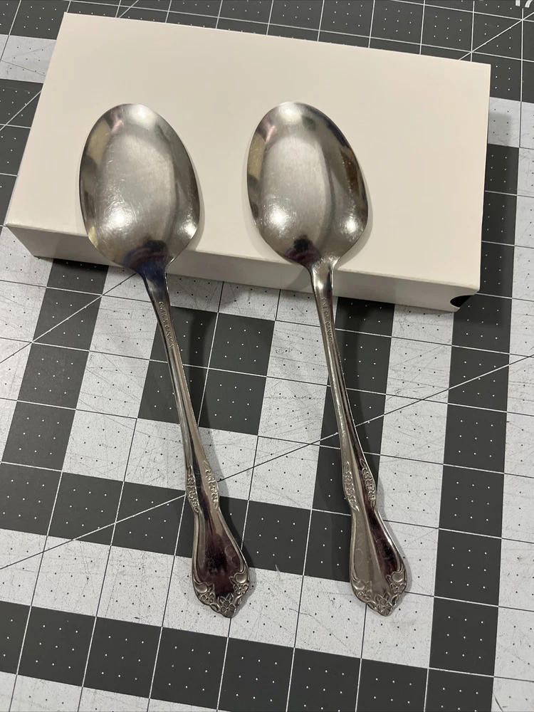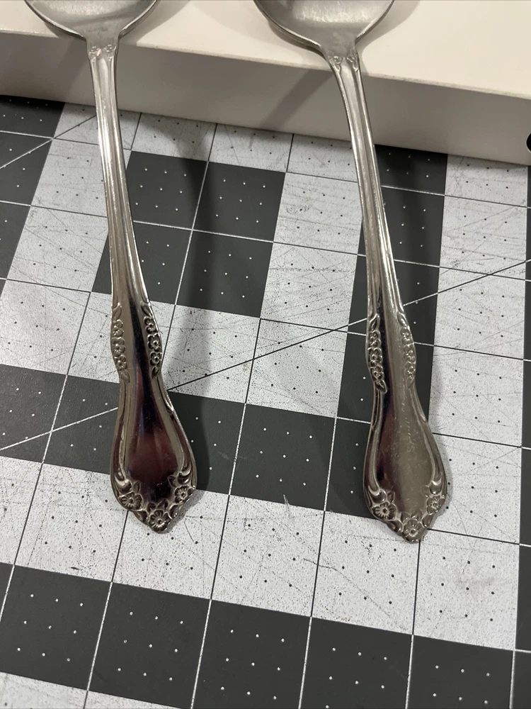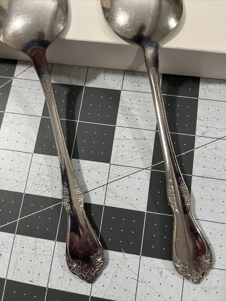 ONEIDA DELUXE (2) Serving Spoons MANSFIELD AMADEUS Stainless Flatware