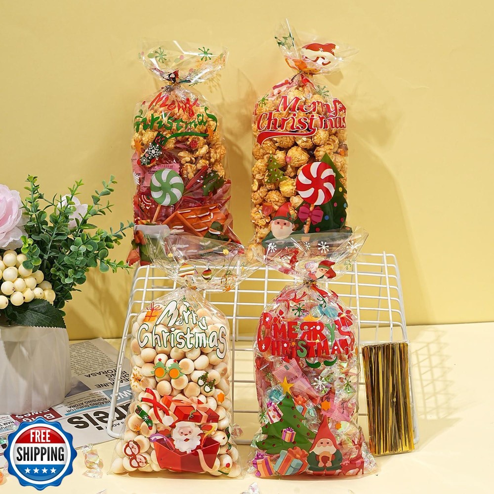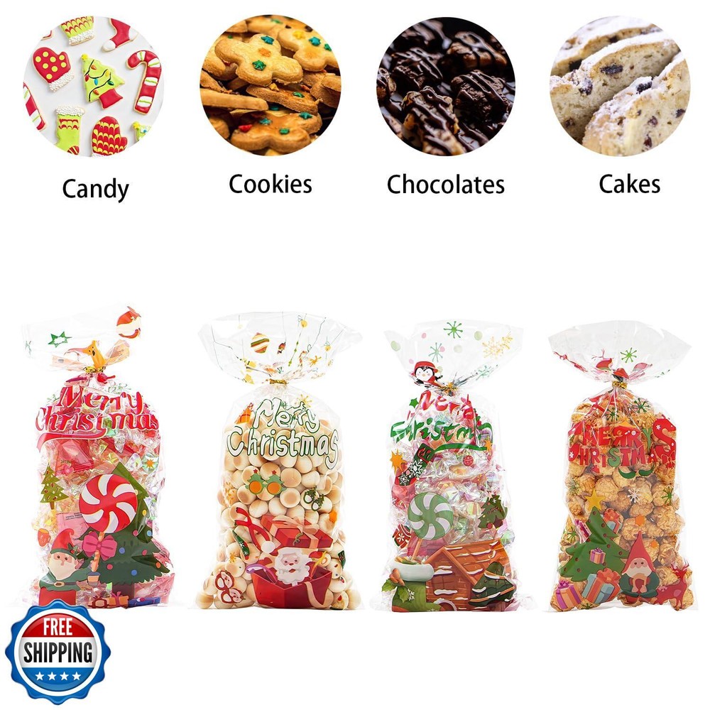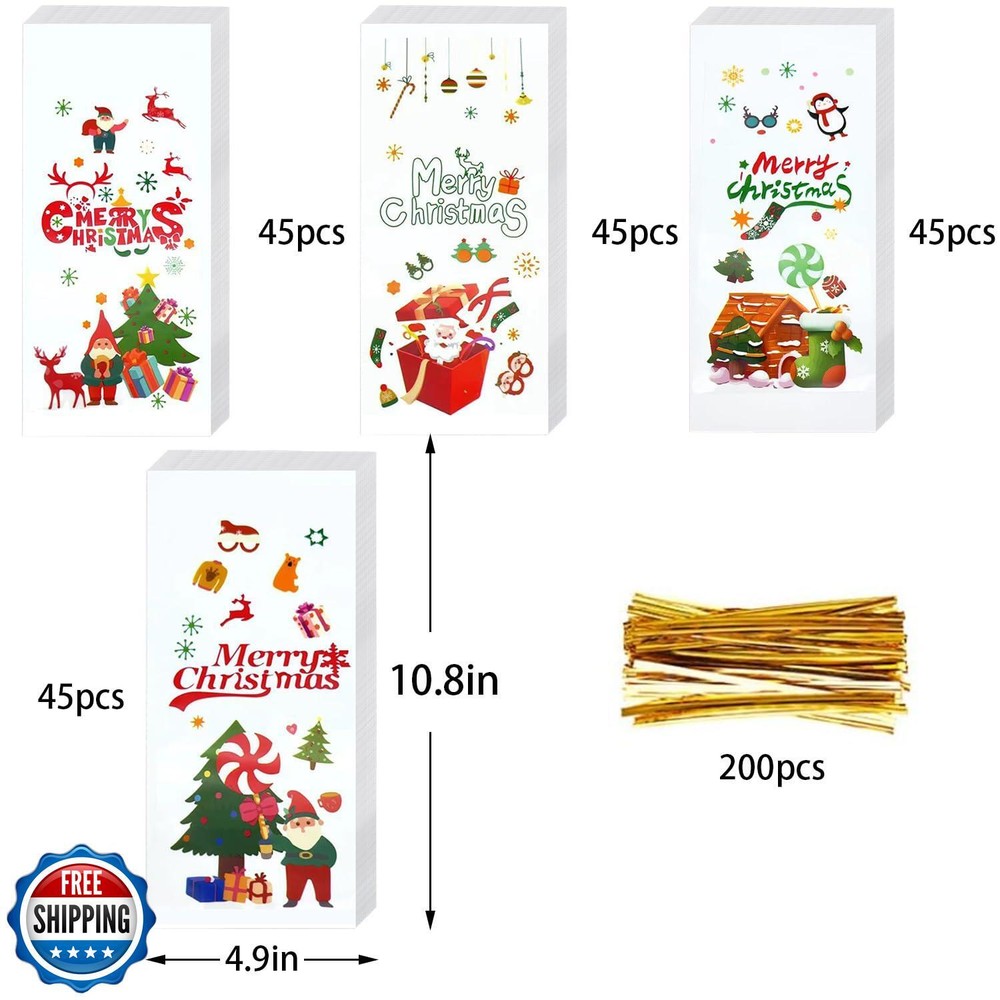 ONFAON Christmas Treat Bags - 180pcs with 200 Twists for Snacks, Cookies, Candy Packing - Goodie Bags for Parties Features β 180 Christmas Candy Bags π¬- Coming in 4 different kooky kid-friendly designs, 45 pcs for each christmas pattern. Christmas treat bags measures 10.8" x 4.9", This set of 180 christmas treats bags is ideal for christmas goody bags or party favors. β Safe Healthy Environmental π¬- The christmas treat bags are made of high-quality BOPP material, durable sturdy, and non-toxic for repeat use. β Wide Application π¬- Those gift bags can be applied to hold candies,cookies,chocolates,cupcakes,popcorns,bicuits and small gifts.Greatly suitable for Xmas party supply and christmas decoration. β Easy to Use π¬- This Christmas candy bag comes with 200pcs twist ties, which can be easily tied to prevent the contents from falling out. β Christmas Gift Bags π¬- Instead of just filling a giant bucket with candy cookies and letting the kids help themselves, why not fill individual Halloween goody bags to hand out instead? And the kids will love them. Shipping Free & Fast Shipping: We offer free shipping to most of the USA with a normal delivery time of 3-7 days. However, due to the current situation, additional delivery time (up to 3 weeks) may be required for some items. Alternative Carriers: We may use alternative carriers (e.g., USPS, FedEx, UPS) to ensure your package arrives safely and on time. Due to the use of multiple carriers, we are unable to provide a tracking number automatically. Handling Time: Orders are processed and shipped within 1-2 business days of receiving cleared payment. Shipping Restrictions: Shipping to Alaska, Hawaii, Puerto Rico, Guam, and other US territories may incur shipping charges or delivery restrictions. Please contact us before ordering, or your order can be refunded/cancelled. State Restrictions: Certain items may not be shipped to California due to state regulations. Contact for Tracking Updates: If you require tracking updates or have any concerns about the delivery of your order, please feel free to contact us, and we will be happy to assist you. Return Policy 30-Day Hassle-Free Returns: If you are not completely satisfied with your purchase, you can return the item for free within 30 days of receiving it for a full refund or exchange. Easy Return Process: Contact us, and we will provide you with a prepaid return shipping label and detailed instructions. No Restocking Fee: There are no restocking fees for returns. However, the buyer is responsible for return shipping costs if the return is not due to a seller"s error. Refund Processing: Refunds will be processed within 1 business day of receiving the returned item in its original condition. Feedback Your feedback is extremely important to us. We strive to provide the best products and customer service possible. If you are satisfied with your purchase, please take a moment to leave us a positive review. If you have any concerns or issues with your order, please contact us before leaving negative feedback. We are committed to resolving any problems and ensuring your satisfaction. Contact Us If you have any questions or concerns, please feel free to reach out to our customer support team. You can contact us through the eBay messaging system. We are available Monday to Friday, 9:00 am to 5:00 pm EST, and we will do our best to respond to your inquiry within 24 hours. Thank you for supporting our small family business!