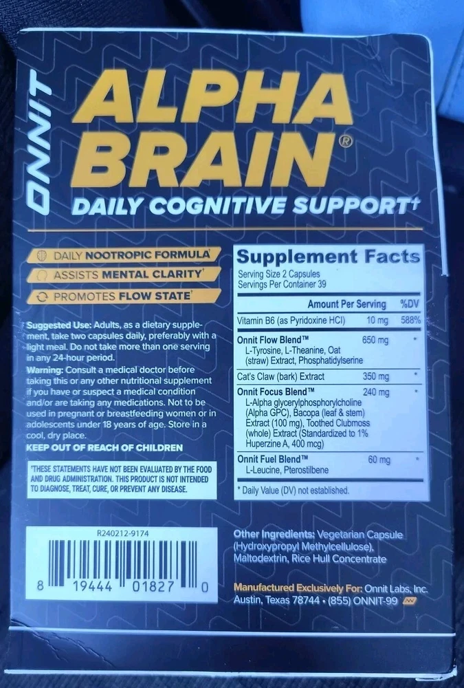 Active Ingredients:TyrosineExpiration Date:06/2026+Ingredients:MushroomBrand:OnnitMPN:939393gtin13:0819444018270When to Take:two capsules daily, preferably with a light MealType:Dietary SupplementMain Purpose:Support cognitive functions, memory, FocusNumber of Pills:78Department:UnisexFeatures:sugar-free, caffeine-free, dairy-free, gluten-freeUPC:0819444018270Formulation:Capsule