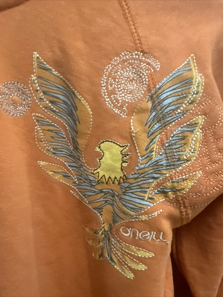 O'Neill Orange Long Sleeve Zip Up Hoodie Embroidered Women's Large
