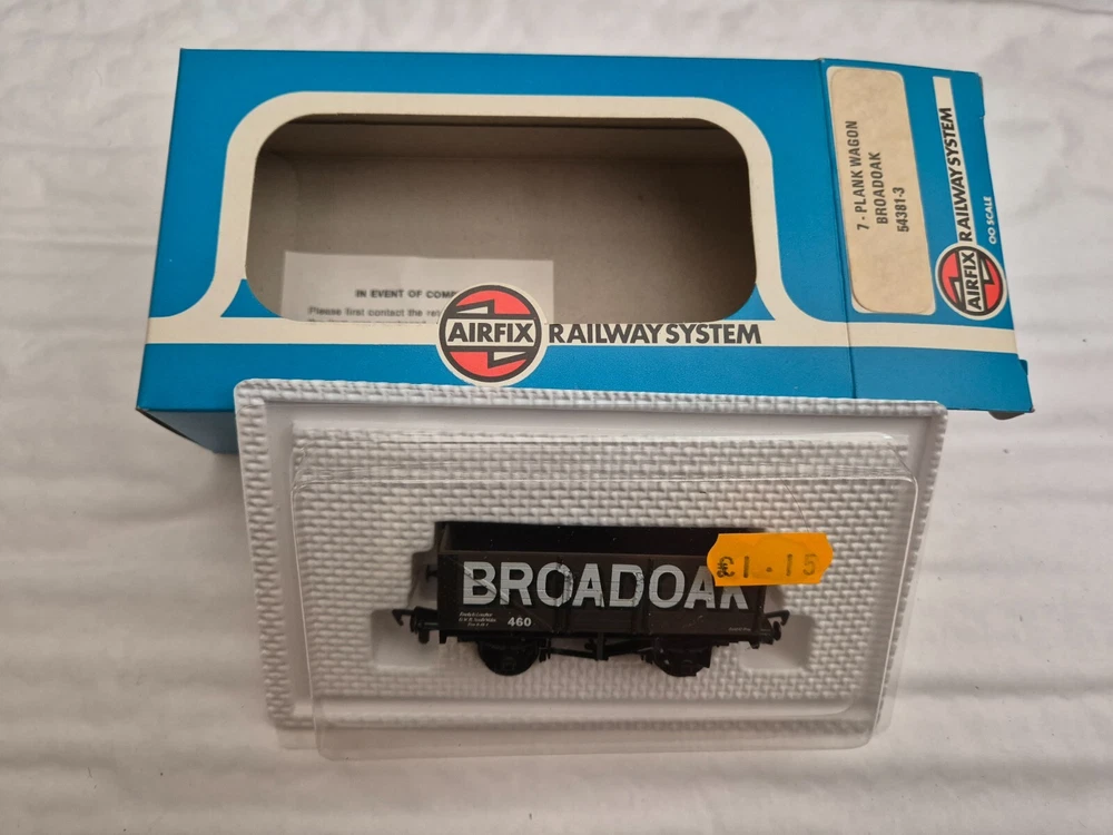 OO GAUGE AIRFIX RAILWAYS 7 PLANK WAGON BROADOAK BOXED 54381-3 This product data sheet is originally written in English. YOU ARE BUYING A 7 PLANK WAGON BROADOAK MADE BY AIRFIX RAILWAYS EXCELLENT CONDITION IN ORIGINAL BOX SEE PHOTOS FOR EXACT IDEA ON CONDITION VERY FEW OTHERS AROUND NOWADAYS. DO NOT MISS OUT YOU ARE BUYING A 7 PLANK WAGON BROADOAK MADE BY AIRFIX RAILWAYS EXCELLENT CONDITION IN ORIGINAL BOX SEE PHOTOS FOR EXACT IDEA ON CONDITION VERY FEW OTHERS AROUND NOWADAYS. DO NOT MISS OUT Brand Airfix Type Tank Wagon Gauge OO