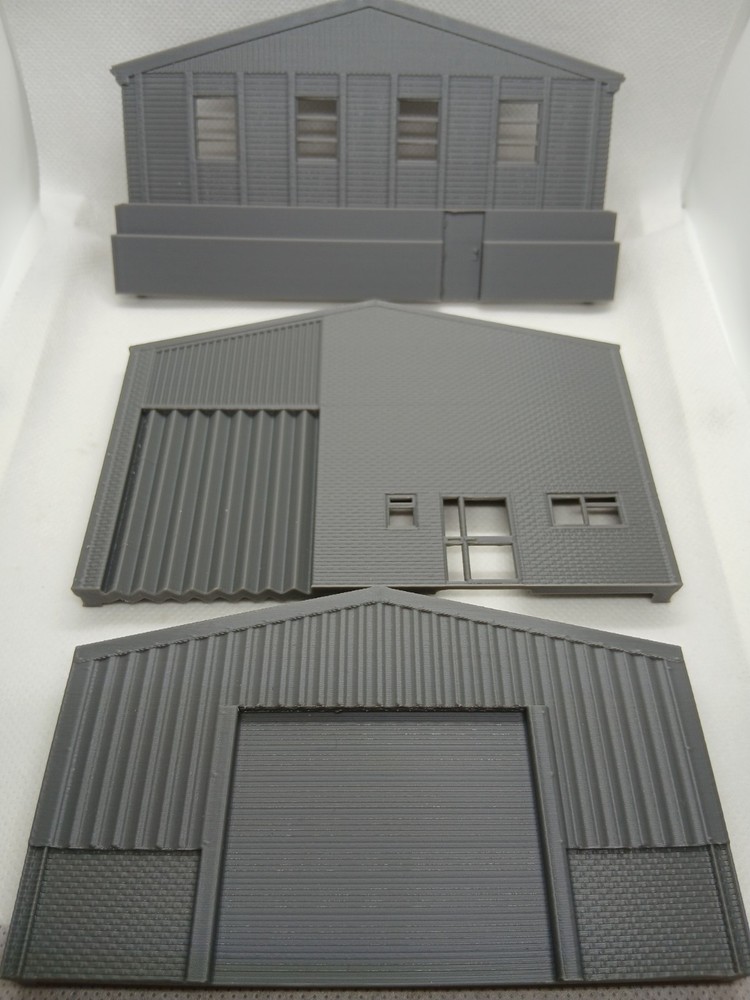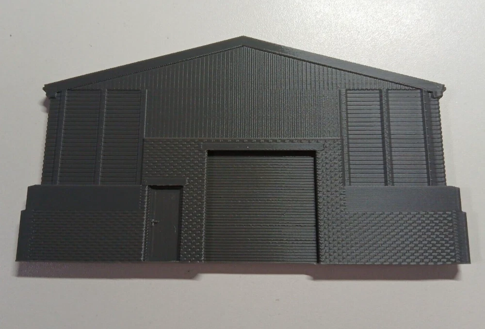 You are looking at a 3d printed OO Gauge Model Railway Low Relief warehouse, commercial building fronts or rears. To be clear if you are not aware of the term 'low relief' this is where a design is not a complete building and known as a shallow relief or flat relief. Designed primarily to be viewed from one angle and unlike our normal scaled models these have limited depth and typically attached to a back drop or a wall. We have 4 different designs for the fronts, 4 desigs for the rears (to basically be the match for the fronts) and also 3 depths for each design - 10mm 40mm and 70mm so please choose your option from the drop downs. Three of the designs are quite conservative in design and more small commercial, whilst front/rear 2 is a whopper and a more double fronted industrial unit. A lot of people will only have space for the 10mm versions but the 40's are a definite middle ground adding a little bit more detail to the side like doors or windows and drainpipes for example. 70mm versions are definitely quite commanding and do take up a lot of space but they have been quite popular Dimensions: all depths vary as this can be selected 10,40 or 70mm. Front 1 and rear 1: 132mm W x 78mm H Front 2 and rear 2: 246mm W x 146.5mm H Front 3 and rear 3: 157mm W x 85.5mm H Front 4 and rear 4: 143mm W x 100mm H