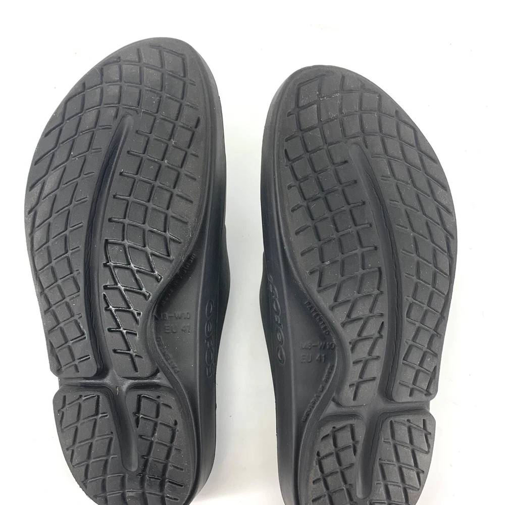 OOFOS OOahh Recovery Slide Sandal Black Men's 8 Women's 10. Item is in good preowned condition normal signs of use as pictured.
