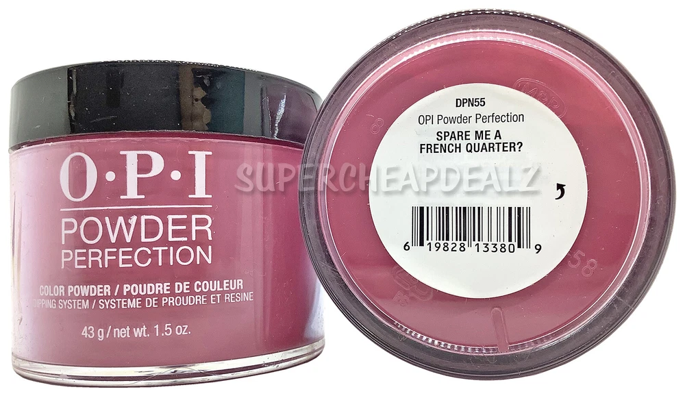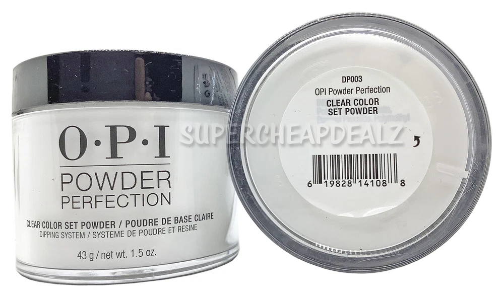 OPI Powder Perfection - CHOOSE Dip Powder | Base | Activate | Top Visit our eBay store for more great deals! Item Details OPI Power Perfection Dip Powder | Base | Activator | Top Dip Powders DO NOT come with the liquids. Please select to purchase. Sold separately. Choose option from drop down menu Dip Powder - 43 g / 1.5 oz Base Coat - 15 ml / 0.5 oz Activator - 15 ml / 0.5 oz Top Coat - 15 ml / 0.5 oz Click here for the OPI Acrylic Polish Organizer Rack Click here for the OPI Dual Cure LED Nail Lamp All goods are 100% AUTHENTIC and brand new , in manufacturer's original packaging. OPI Nail Powder Dip into durability with dipping powers designed to give you confidence. Get beautiful and strong nails that hold up to your lifestyle. *Information provided by OPI Disclaimer Actual colors may vary. This is due to the fact that every computer monitor has a different capability to display colors and that everyone sees these colors differently. We try to edit our photos to show the samples as life-like as possible, but please understand the actual color may vary slightly from your monitor. We cannot guarantee that the color you see accurately portrays the true color of the product. Disclaimer: Handle and store product with care per manufacturer instructions. Use at your own risk. Seek professional attention if needed. SuperCheapDealz, Inc . is not responsible or liable for any type of improper usage or negligence of this product, which may cause damage or harm. Use this product for its intended use only. SuperCheapDealz, Inc. is not responsible for changes of manufacturing components, specifications or color which may differ from literature, websites or other promotional items. Image may vary from different types of screens. Shipping will comply with regulations and shipped ORM-D . Dip Powder: Ingredients - polyethyl methacrylate, polymethyl methacrylate, benzoyl peroxide, silica. may contain: aluminum hydroxide, barium sulfate, bis propane, calcium aluminum borosilicate, red 6, red 7, violet 2, iron oxides, red 30, red 27, barium sulfate, ultra marines, yellow 5, bismuth oxychloride, maganese violet, ferric ferrocyanide, blue 1, red 33, mica, tin oxide. Liquid: Ingredients - Ethyl Acetate, Methyl Propyl Ketone, MIBK, Dimethyltolylamine Terms of Sale Payment: We accept Paypal, Visa, Mastercard, Discover & American Express Returns: W e stand behind every product we sell with a 100% product guarantee. Please contact us if you are not satisfied with your purchase within 30 days from the delivered date. R eturned item must be in original condition, including the box, stickers/labels, packaging, and all accessories. Restocking fee of 20-50% will be applied if these conditions are not met. A ny return without our authorization will not be accepted. A ll return packages should be accompanied by a tracking or delivery confirmation number back to our warehouse. Shipping Information We offer FREE SHIPPING on all orders in the 48 contiguous United States! Shipping to Alaska or Hawaii will require additional charges. We ship all orders the same day or next business day. Once an order is shipped, you will be emailed a tracking number. Please make sure you enter the correct shipping address. We will not make any changes to the shipping address once you place an order .