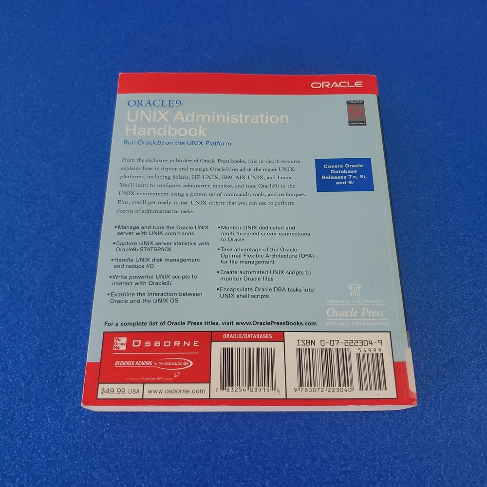 - ORACLE9i UNIX ADMINISTRATION HANDBOOK - YOU GET THE BOOK YOU SEE IN THE PICTURES - ORACLE9i UNIX ADMINISTRATION HANDBOOK - EX-LIBRARY BOOK - GOOD CONDITION - PLEASE READ ITEM CONDITION ABOVE FOR MORE DETAILS - ISBN NUMBER: 9780072223040 - SHIPPING IS FREE