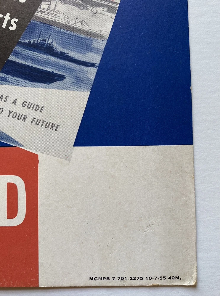 ORIGINAL 1955 US Navy recruitment poster It's On Board 8 1/2 by 11". "It's On Board". dated 10/7/1955. heavy card stock