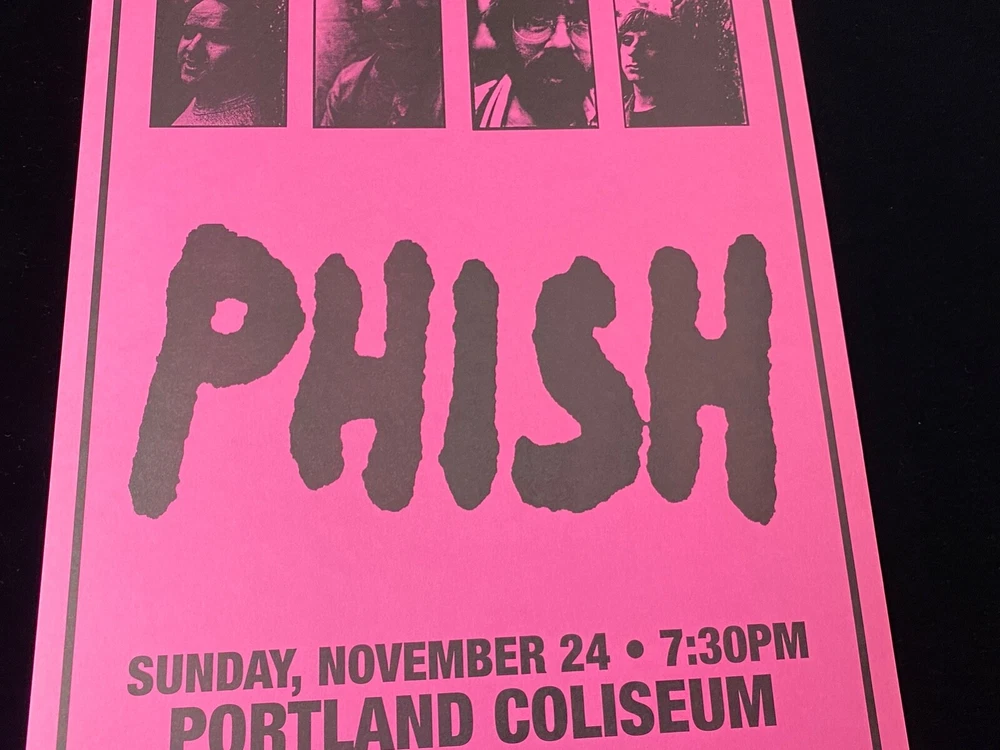 CHECK OUT OUR 7 DAY AUCTION FOR PHISH CONCERT POSTERS ENDING WEDNESDAY 11/27! Up for sale is an original 1996 Phish concert poster from their legendary performance at the Portland Coliseum . Presented by Bill Graham Presents , this poster commemorates Phish’s show on Sunday, November 24, 1996 , and is an essential collectible for Phish fans and concert poster enthusiasts alike. Specifications : Dimensions : 17 inches by 11 inches. Artist : Unknown. Date of Event : November 24, 1996. Venue : Portland Coliseum. Condition : Great overall condition, with slight tear and stain at the bottom center (see photos for details). Material : Semi-thick cardstock with a matte finish on the front and clean back. Printing Type : Original lithograph printing. Condition Details : Front : The bold pink and black design is bright and eye-catching, featuring black-and-white portraits of the band members across the top. All event details are clearly legible, including information about the release of the Billy Breathes album . Minor tear and light stain at the bottom center , which does not detract significantly from the overall presentation (refer to photos). Back : The reverse side is clean and smooth, free from major marks, discoloration, or writing. Notable Features : Bill Graham Presents : Produced under the iconic banner known for its visually stunning and highly collectible concert posters. Commemorates the Portland Coliseum show, part of Phish’s Billy Breathes tour. Authentic details include contact information, Ticketmaster hotline, and event branding. The black-and-white photo portraits of the band members add a nostalgic and personal touch to the poster’s design. Why Buy This Poster? This original 1996 Portland Coliseum Phish poster is a rare and vibrant piece of music history, perfect for collectors or anyone seeking to celebrate the band’s creative energy during this era. Whether you're a Phish enthusiast, a concert memorabilia collector, or an admirer of unique poster designs, this lithograph captures the spirit of an unforgettable performance. Don’t miss your chance to own this rare collectible! Message with any questions or to request additional photos. Thank you for checking out this listing!