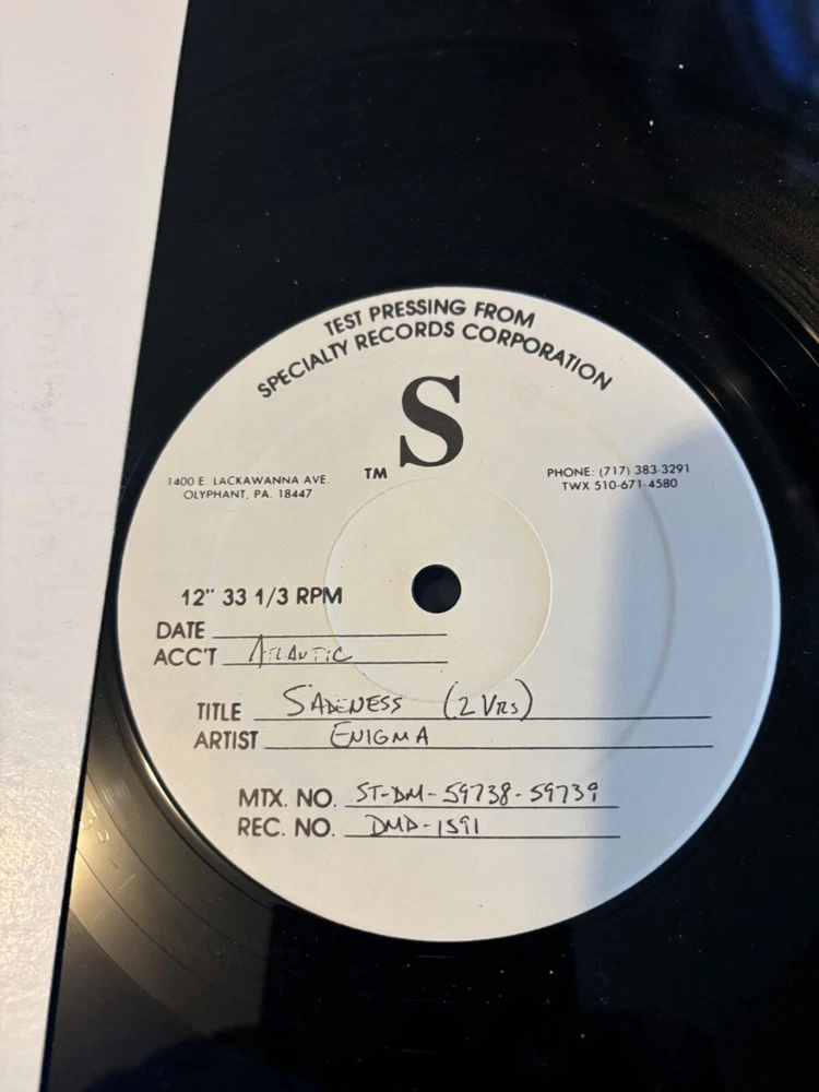 ORIGINAL ENIGMA - SADNESS PART 1 - 12" VINYL Only Generic White Cover