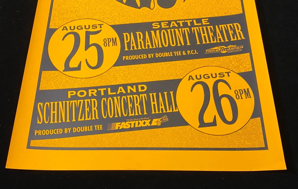 CHECK OUT OUR 7 DAY AUCTION FOR PHISH CONCERT POSTERS ENDING WEDNESDAY 11/27! For sale is an original 1993 Phish poster (blacklight sensitive) promoting their only Northwest appearances that year. Featuring shows at the Paramount Theater in Seattle and Schnitzer Concert Hall in Portland , this beautifully designed 11x17-inch poster is a must-have for fans of Phish or collectors of rare concert memorabilia. With its bold yellow-and-blue design and fish-shaped band logo, it perfectly captures the creative spirit of Phish. Specifications: Dimensions: 11 inches by 17 inches. Artist: Mike King Design: Neon orange front, white verso. A bold, eye-catching layout with a yellow background and a navy blue Phish logo cleverly styled as a fish blowing bubbles. It includes event details such as dates, venues, and ticket information in a vintage typography style. Event Dates: Seattle: August 25, 1993, at the Paramount Theater. Portland: August 26, 1993, at the Schnitzer Concert Hall. Condition: Excellent condition with crisp text and vibrant colors. The back is clean and unmarked (see photos for close-ups). Coloring: Front: Neon orange background with rich navy blue detailing, including the fish logo, event dates, and venue names. Back: Solid white with no marks or stains. Material: Regular paper weight, matte finish that preserves the bold colors and prevents fading. BLACKLIGHT SENSITIVE! Printing Details: Produced with professional offset lithography for sharp, clear imagery and excellent color retention. Condition Details: Front: Vibrant colors and sharp edges with no creases, tears, or fading. Typography and graphic elements are crisp and detailed. Back: Clean white surface with no damage or discoloration. Notable Features: Highlights the only Northwest appearances of Phish in 1993, making it a rare and highly collectible piece of the band’s history. Includes detailed event information, including venues, ticket providers ( Ticketmaster Northwest and Fastixx ), and producers ( Double Tee and P.C.I. ). The fish-shaped logo is an iconic design element that resonates with fans of Phish's creative and quirky aesthetic. Why Buy This Poster? This vintage Phish Northwest Appearances poster is a vibrant piece of memorabilia that celebrates the band’s rare performances in Seattle and Portland during their 1993 tour. With its bold design and excellent condition, this poster is perfect for framing or adding to any music or art collection. Don’t miss this opportunity to own a piece of Phish history! Message with any questions or requests for additional photos. Thank you for your interest!